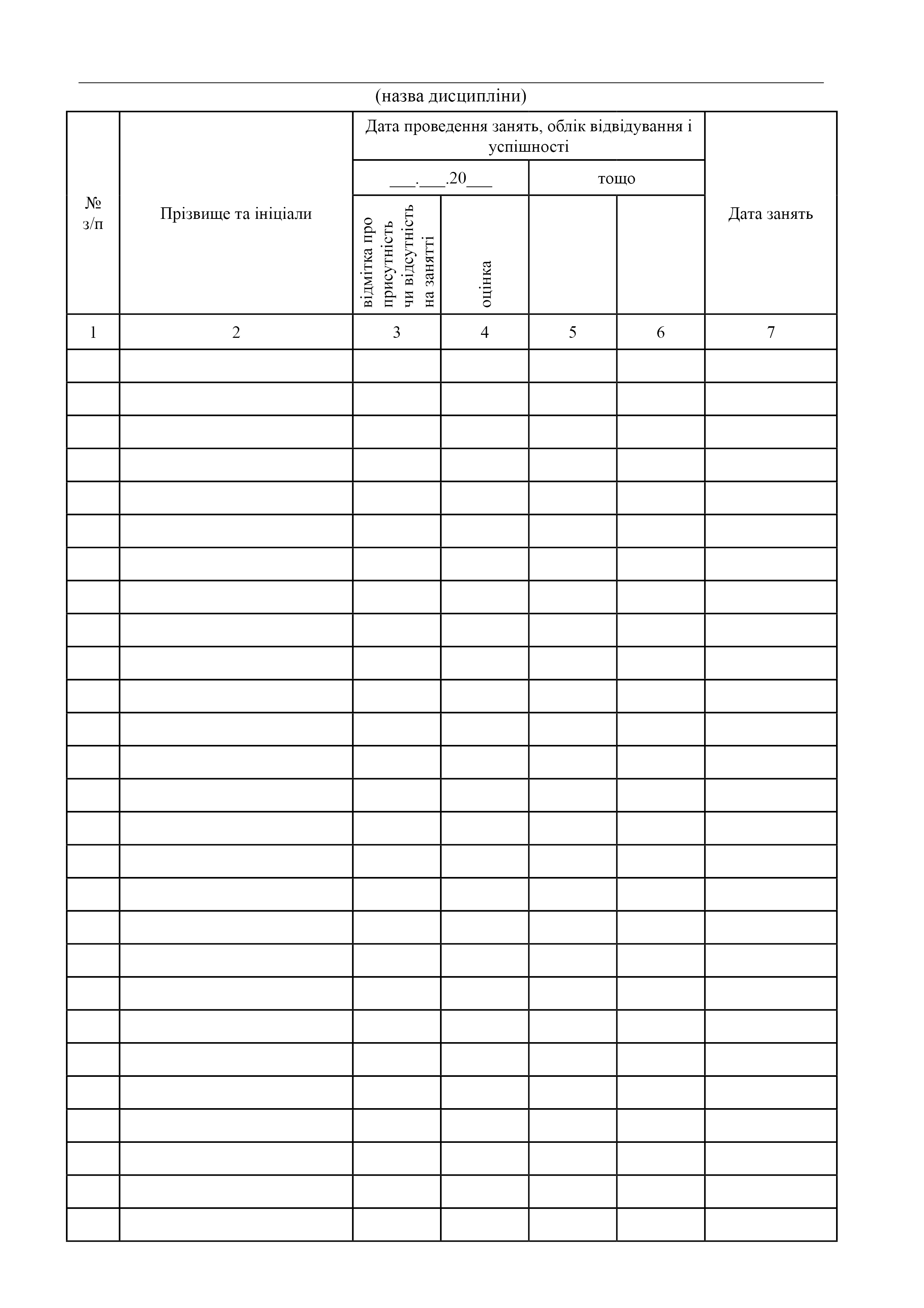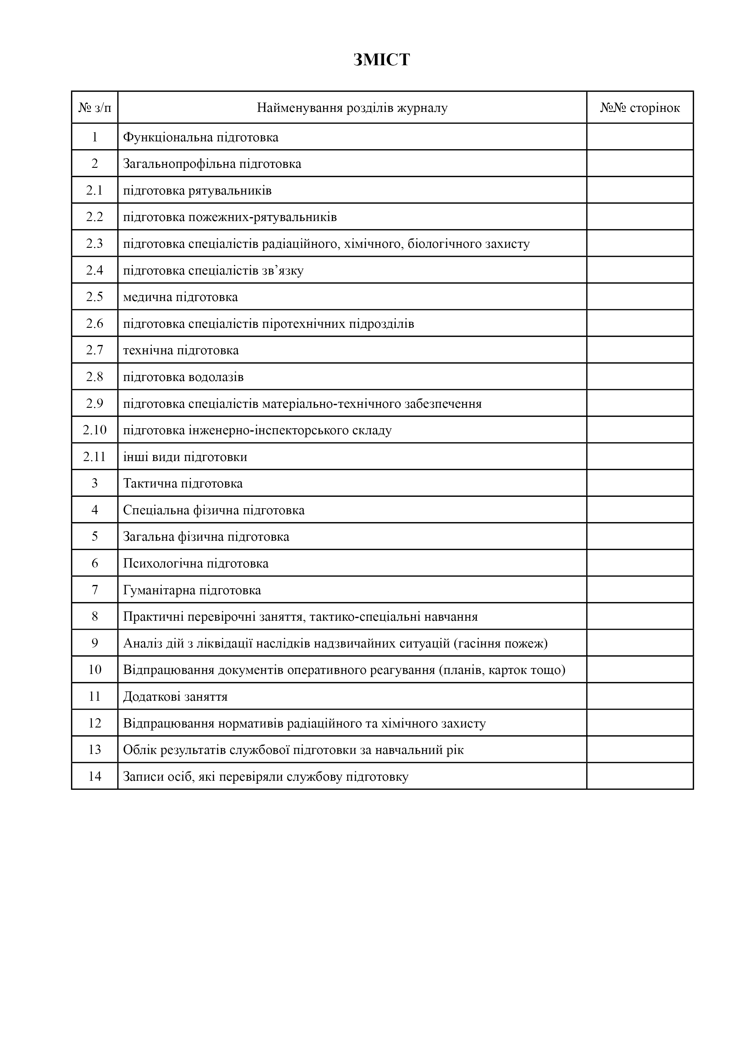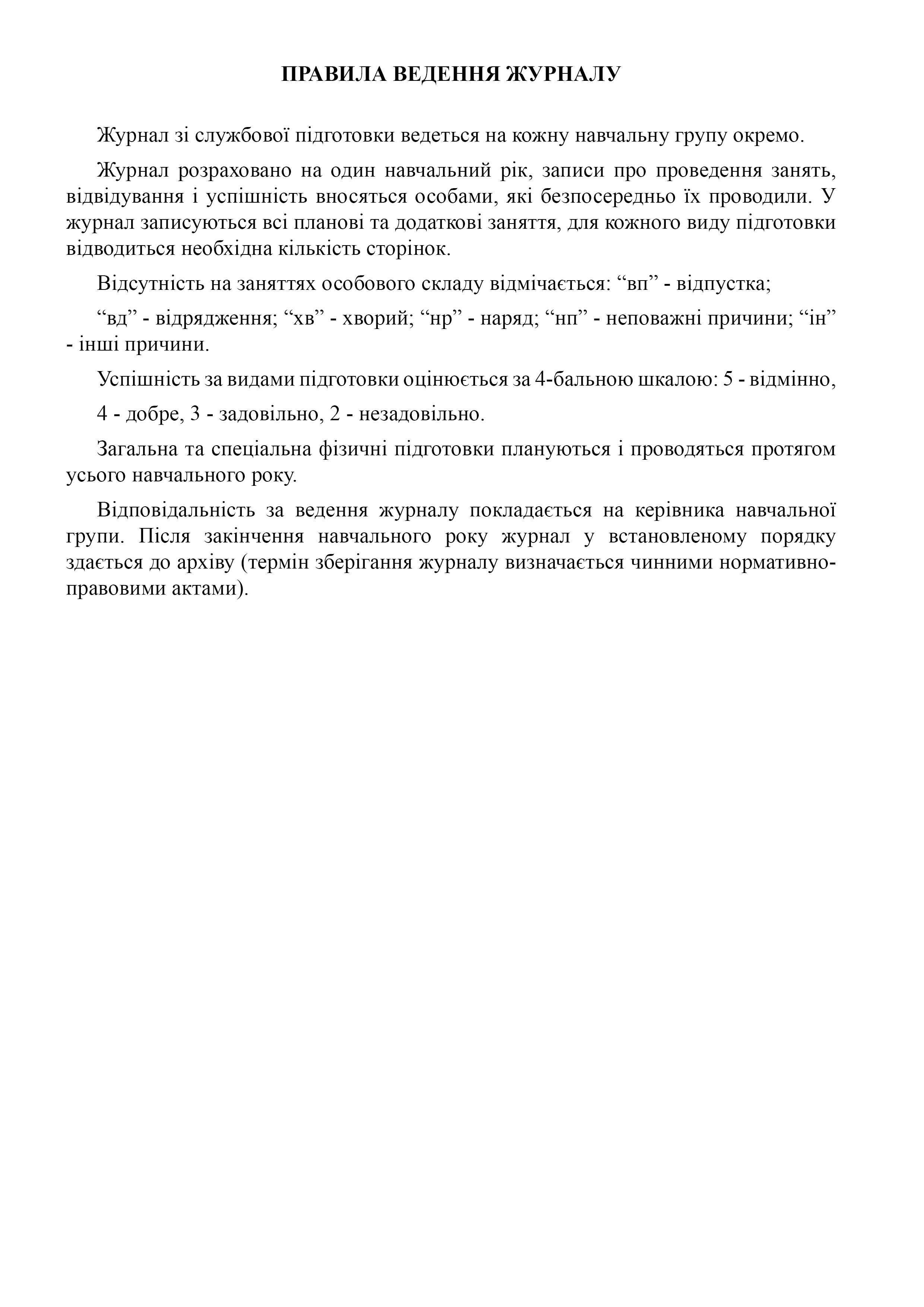 Журнал обліку занять зі службової підготовки.