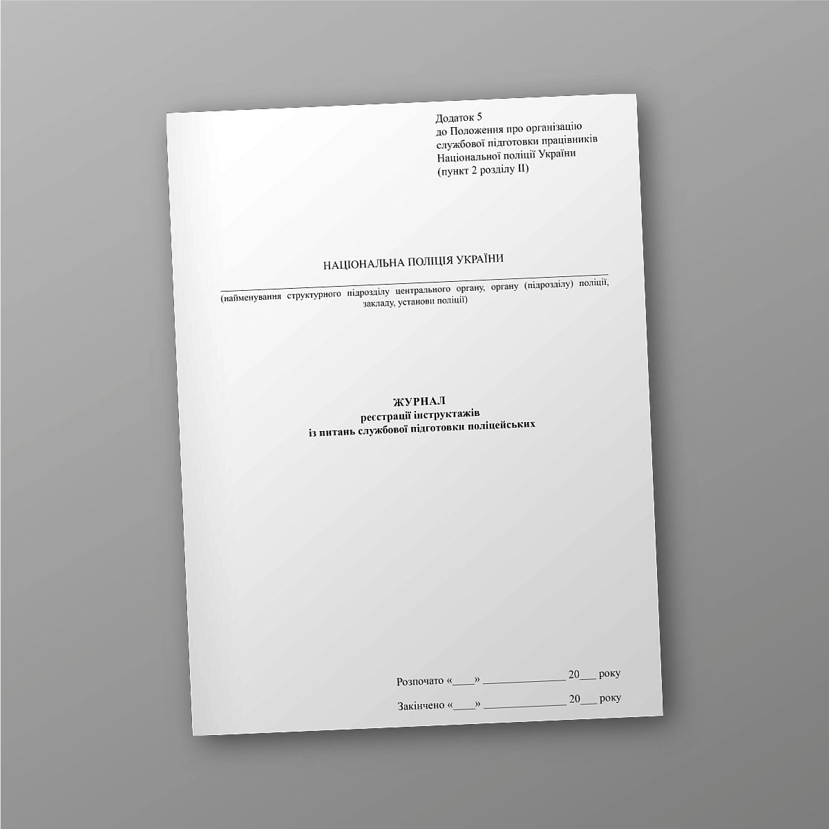 Журнал реєстрації інструктажів із питань службової підготовки поліцейських.