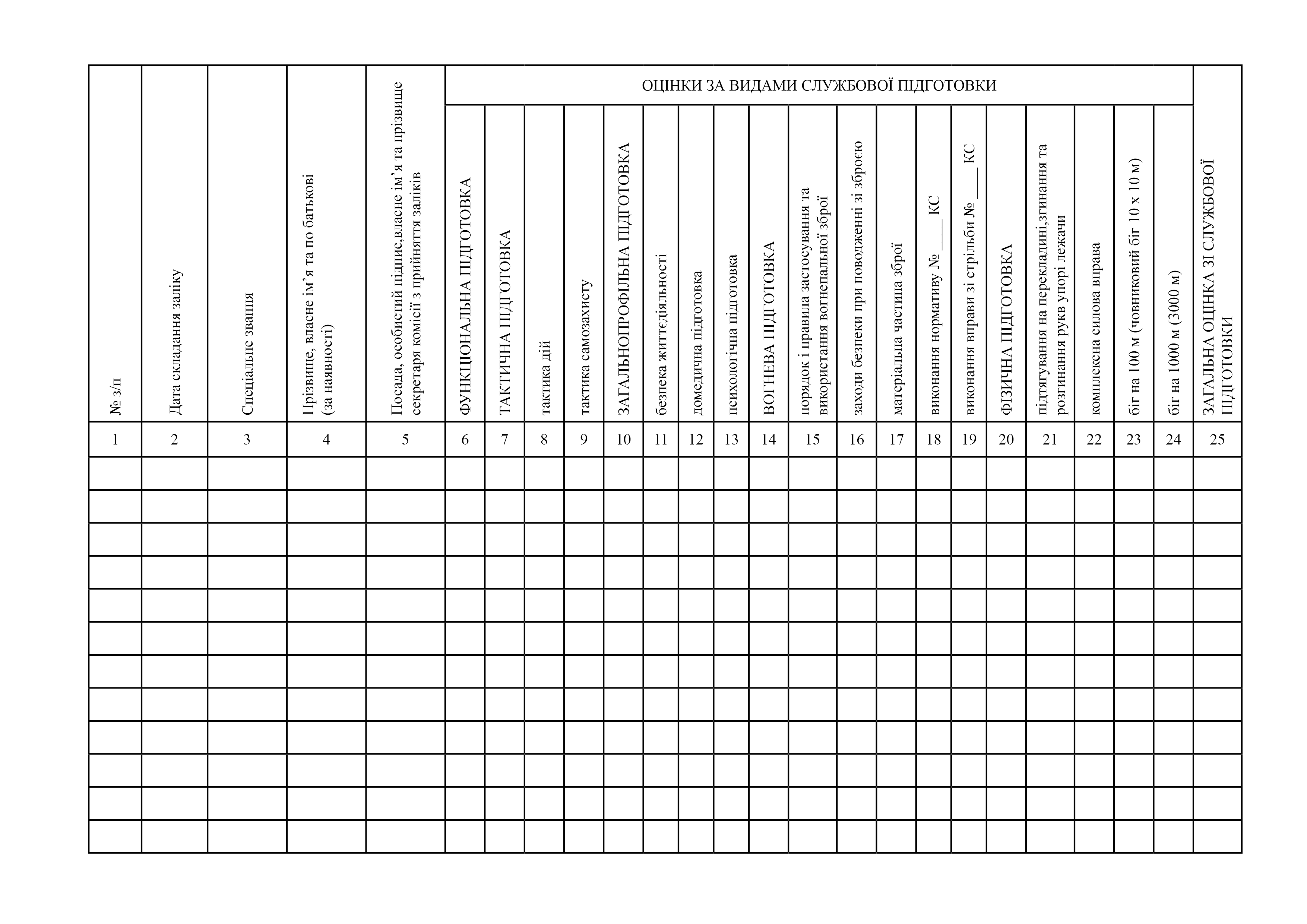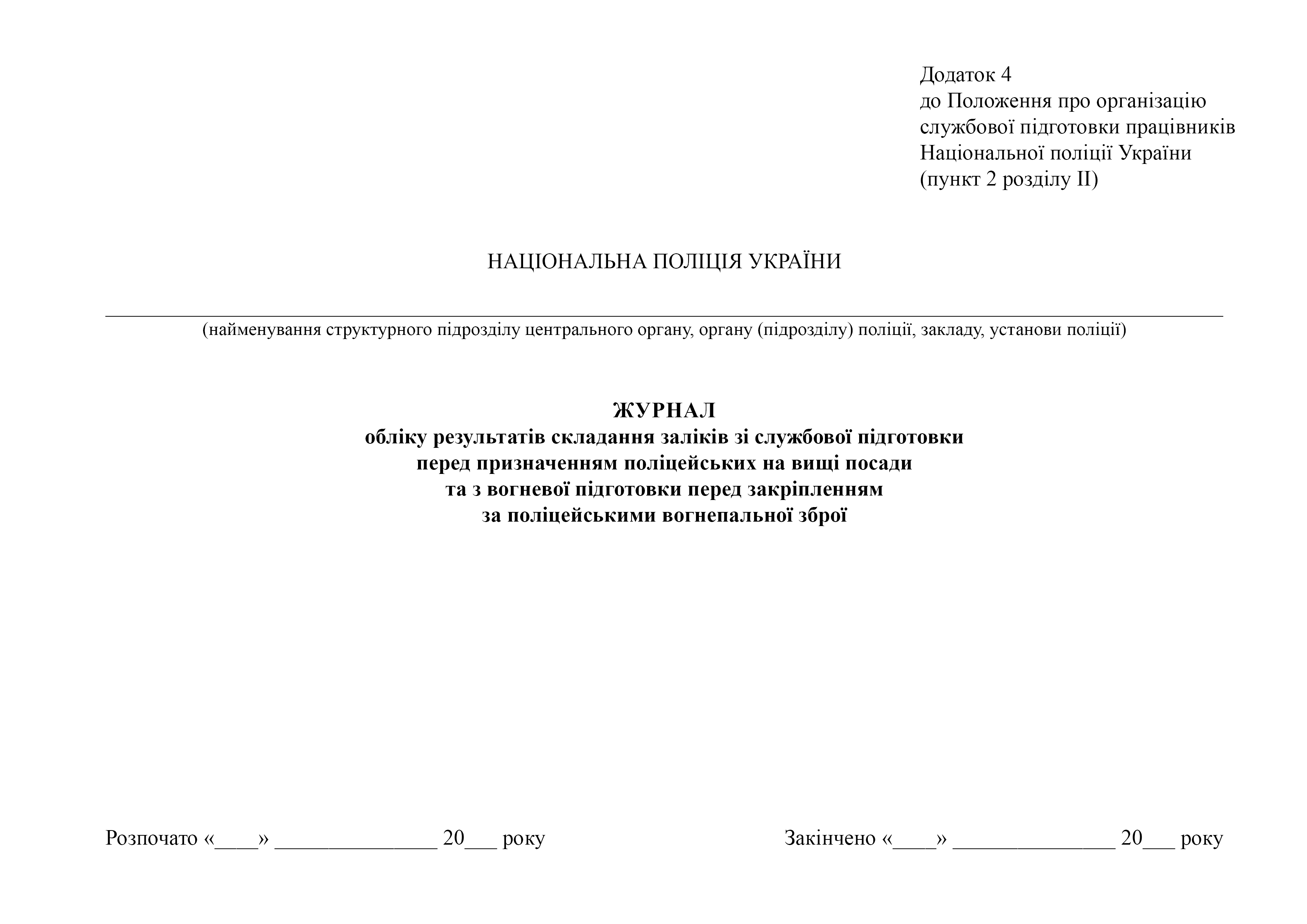 Журнал обліку результатів складання заліків зі службової підготовки перед призначенням поліцейських на вищі посади та з вогневої підготовки перед закріпленням за поліцейськими вогнепальної зброї.