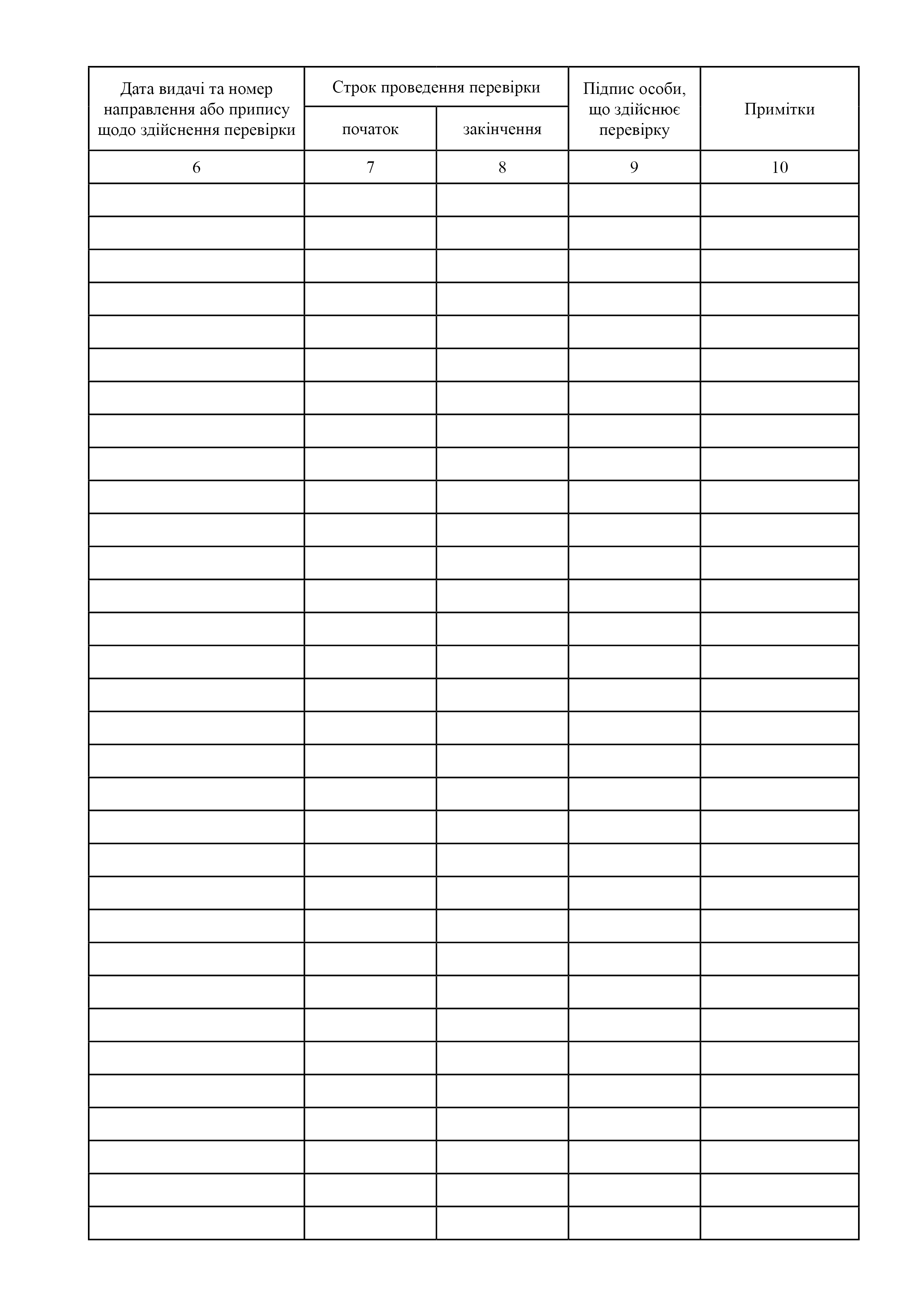 Журнал реєстрації перевірок.