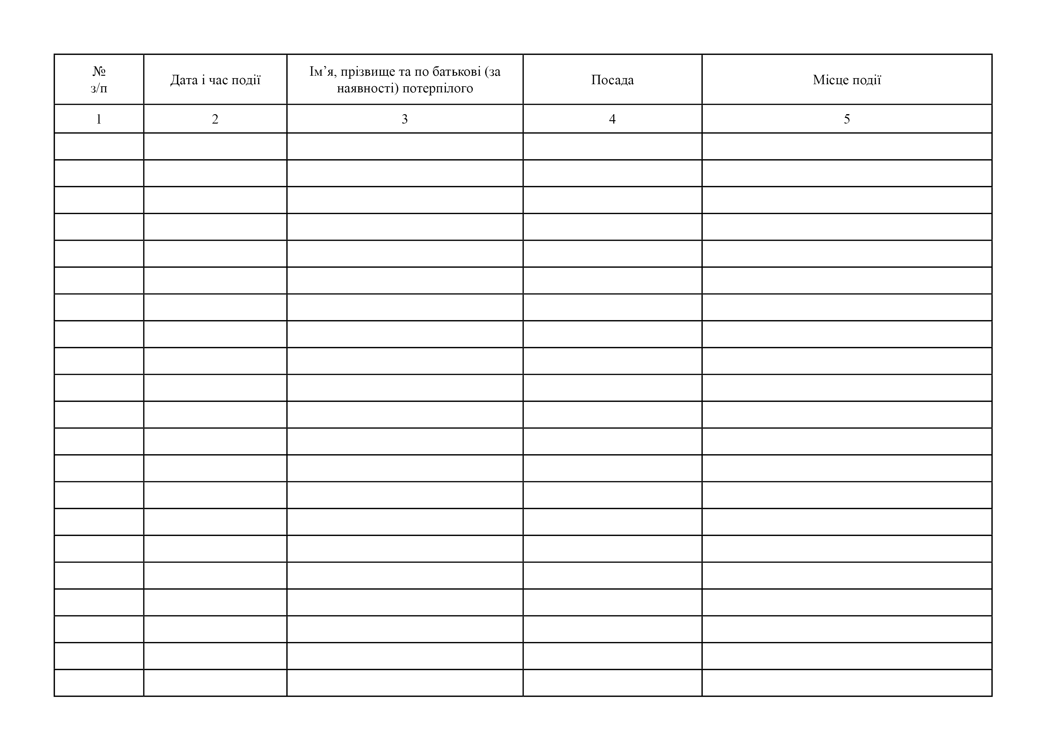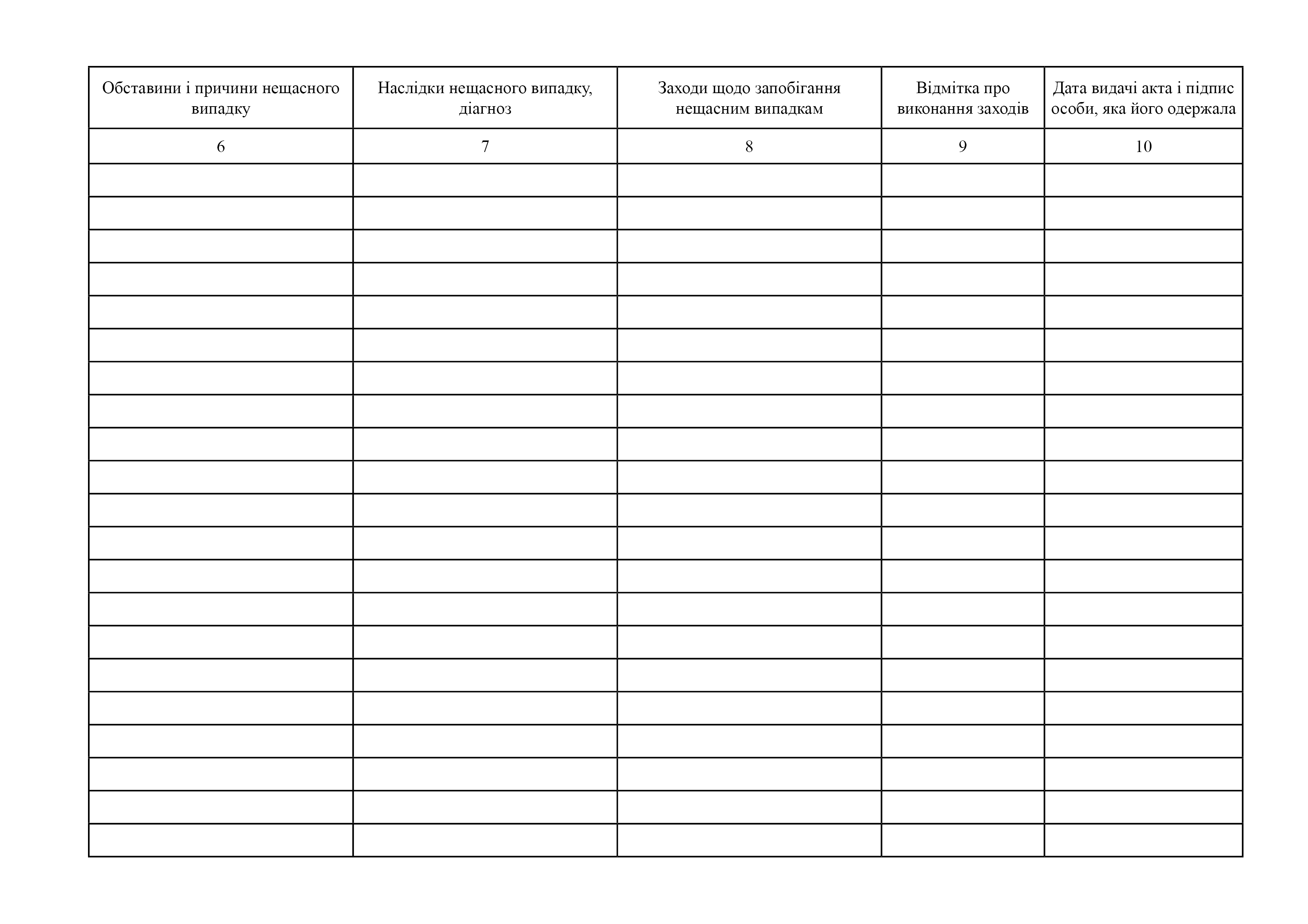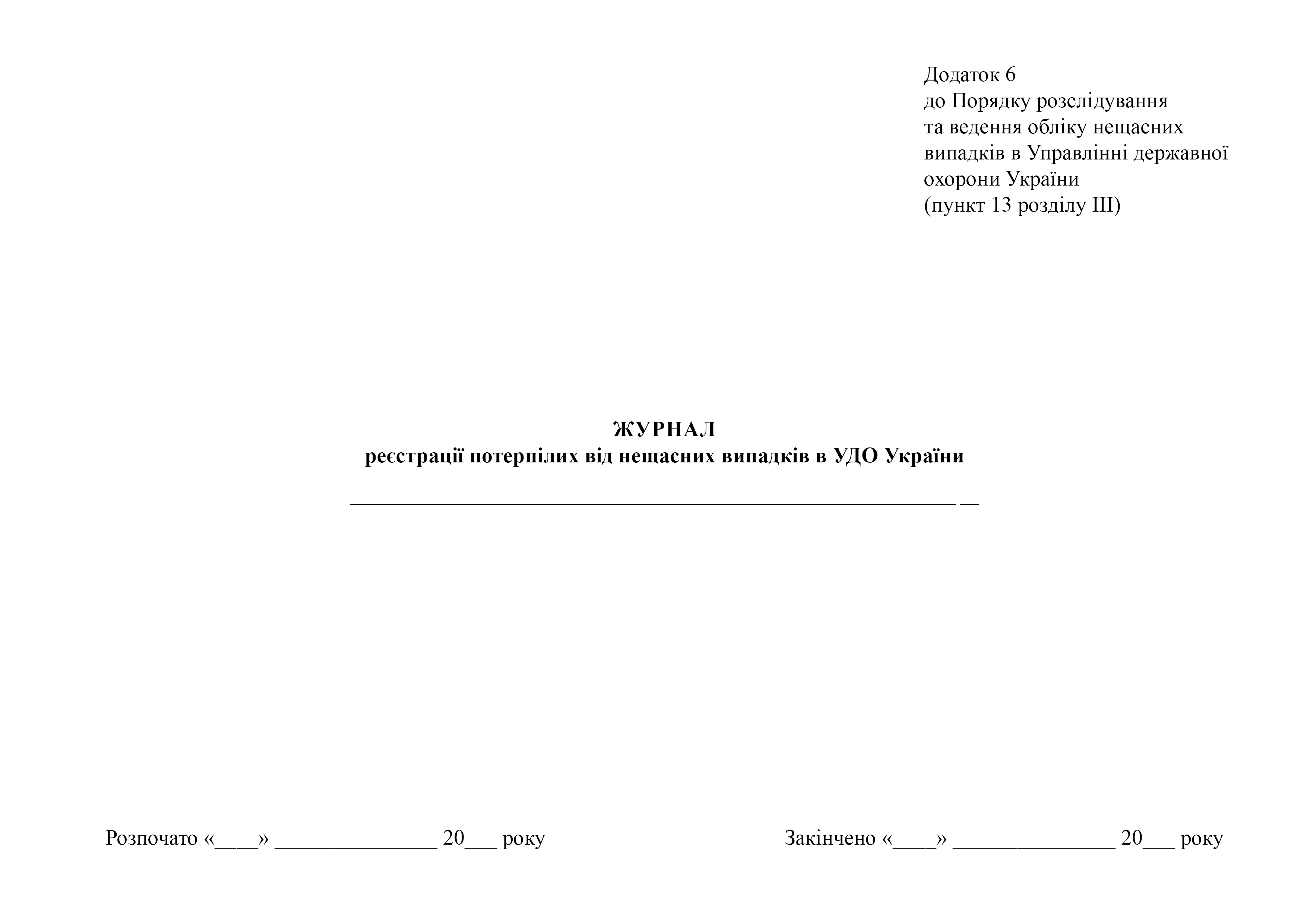Журнал реєстрації потерпілих від нещасних випадків в УДО України.