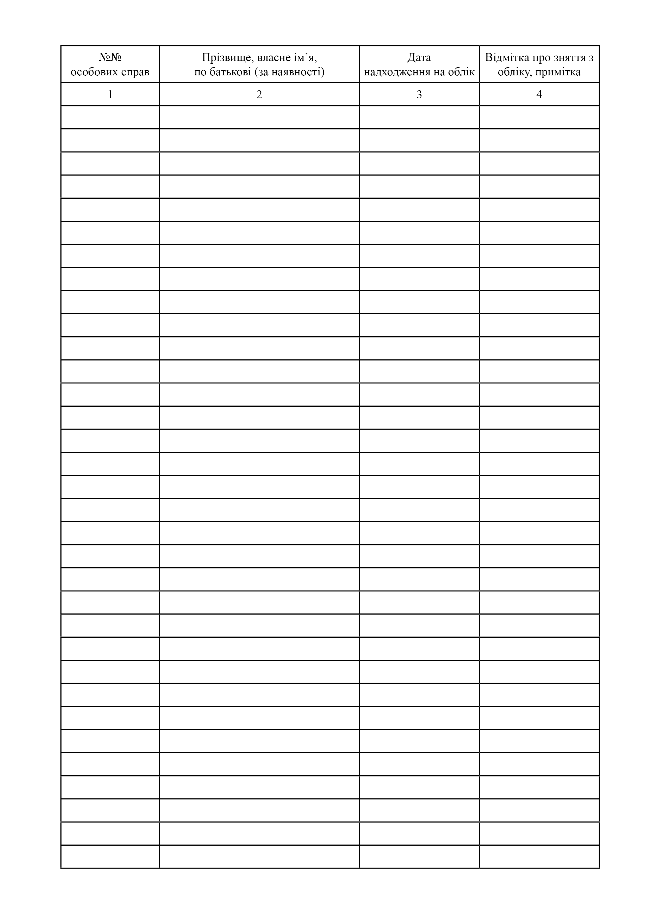 Журнал обліку особових справ.