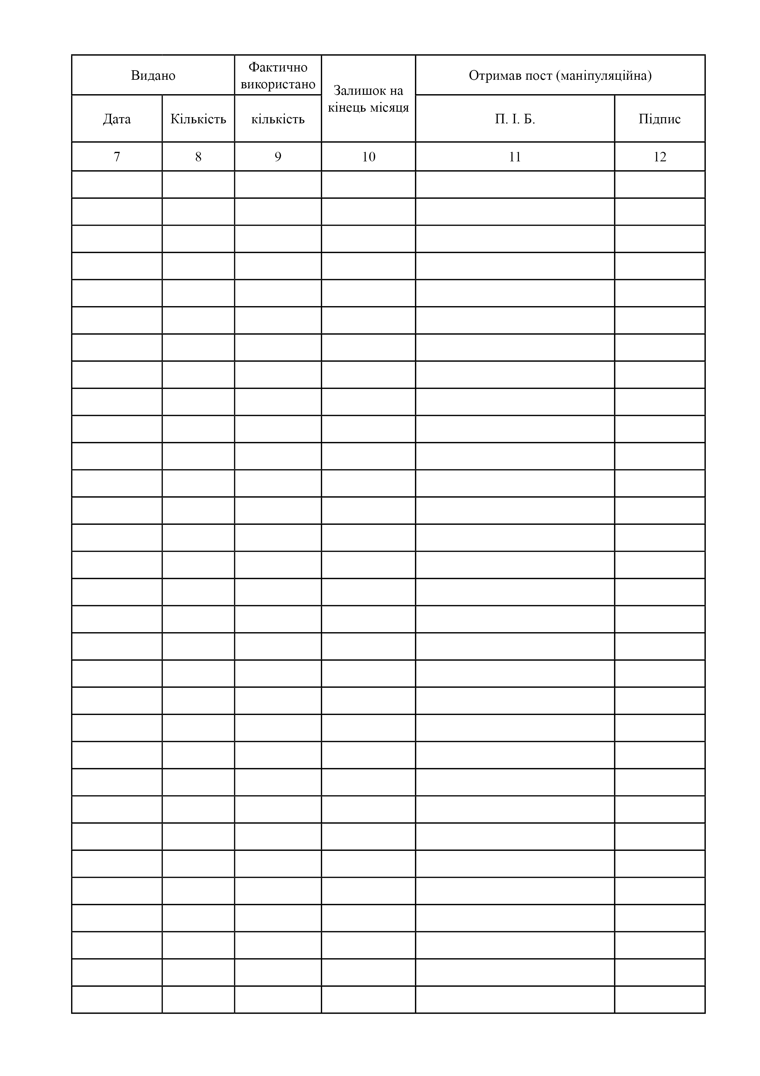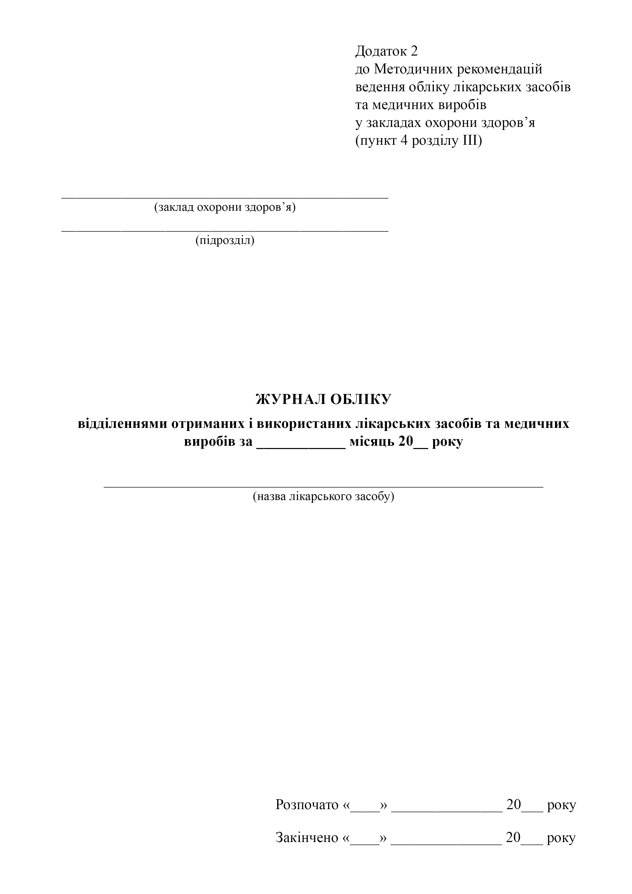 Журнал обліку відділеннями отриманих і використаних лікарських засобів та медичних виробів.