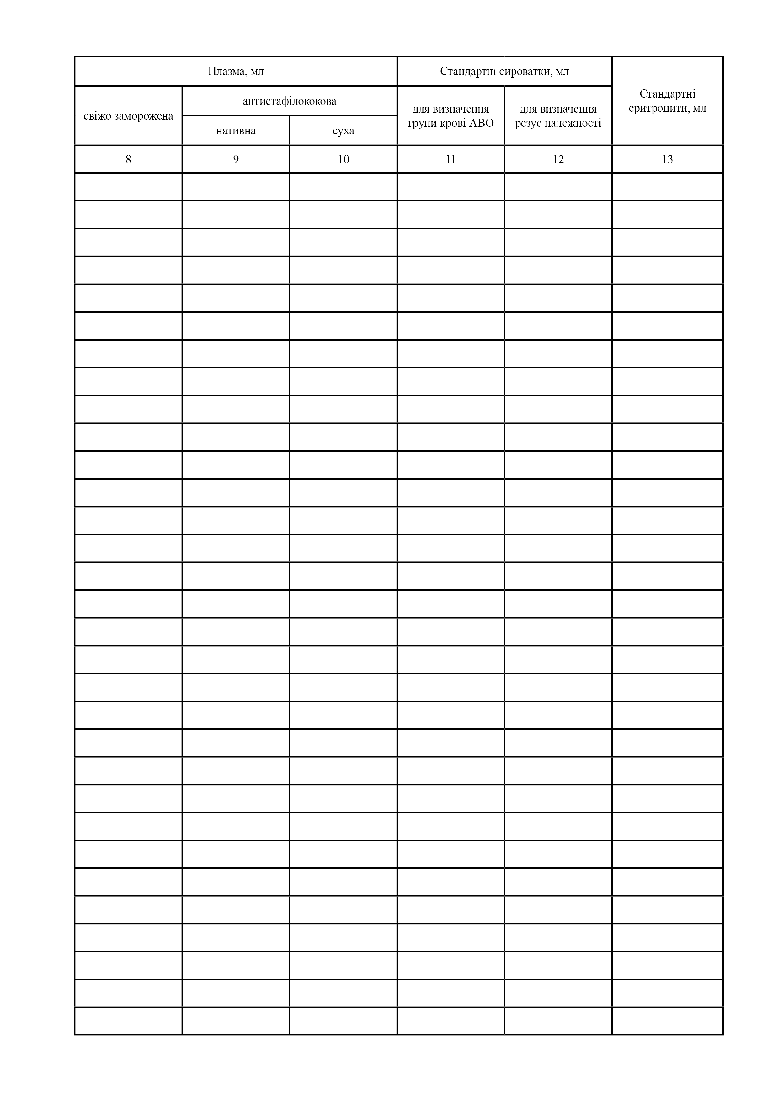 Журнал обліку видачі компонентів крові лікувальному закладу.