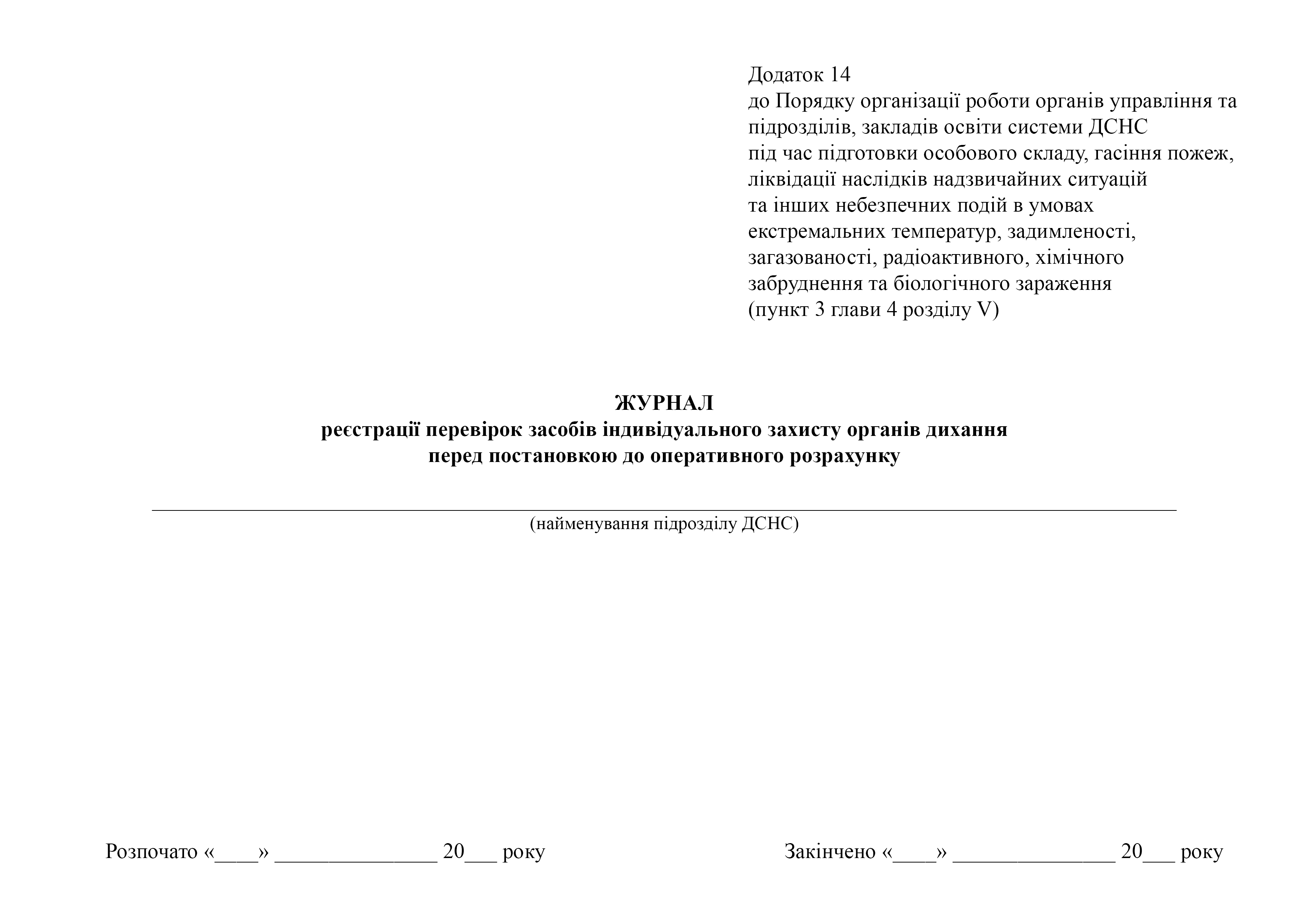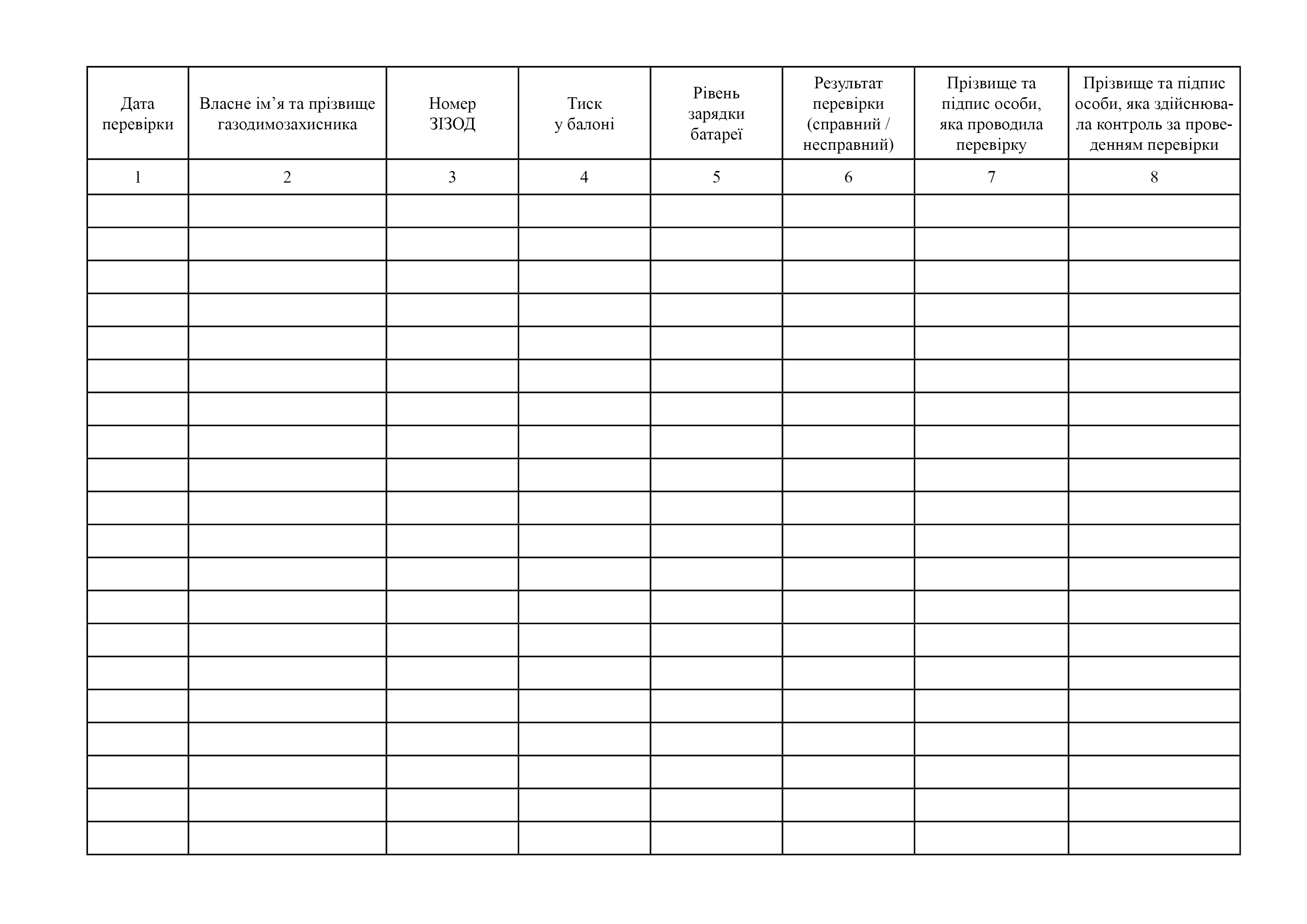 Журнал реєстрації перевірок засобів індивідуального захисту органів дихання перед постановкою до оперативного розрахунку.