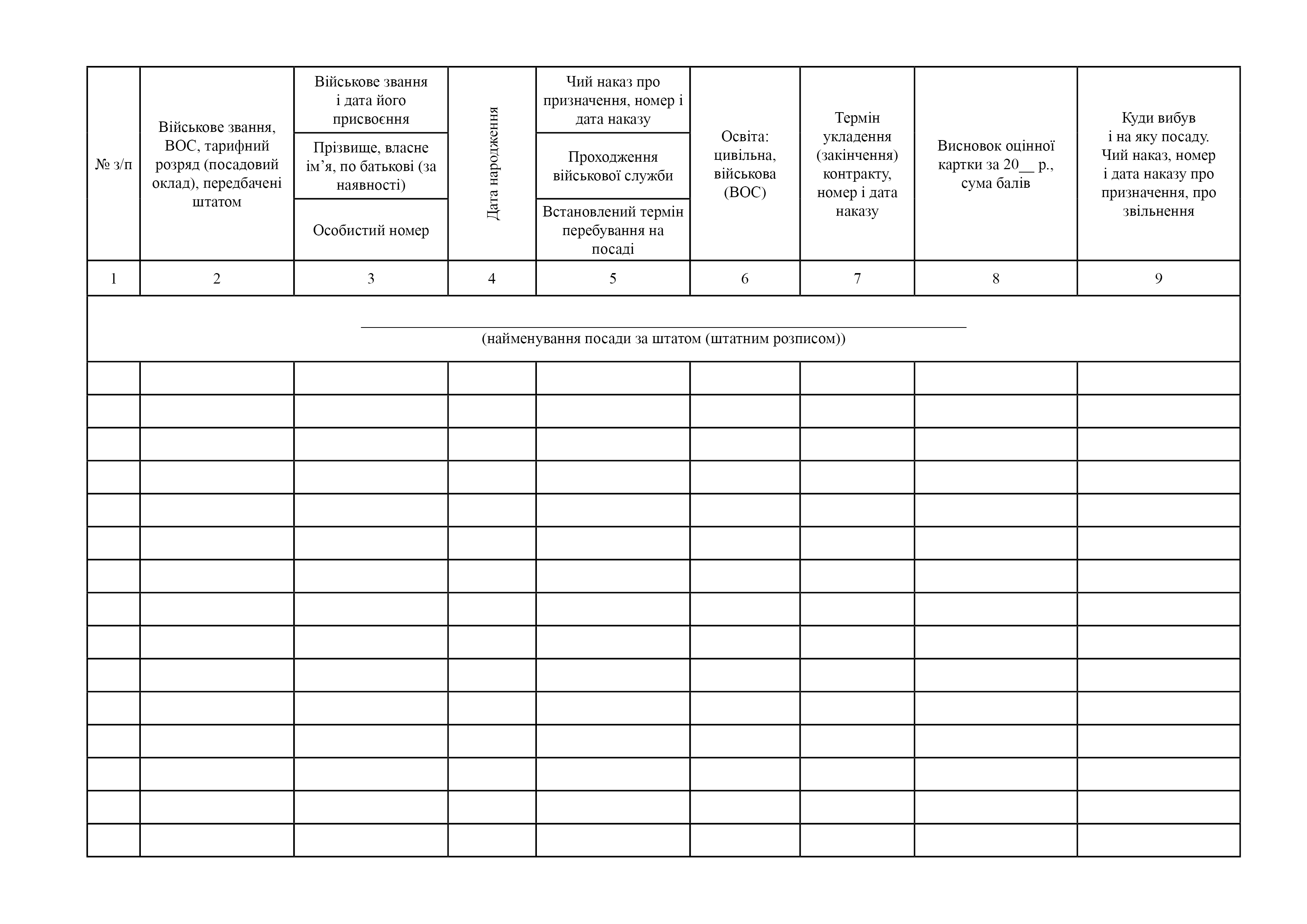 Книга штатно-посадового обліку осіб офіцерського складу, осіб рядового, сержантського і старшинського складу.