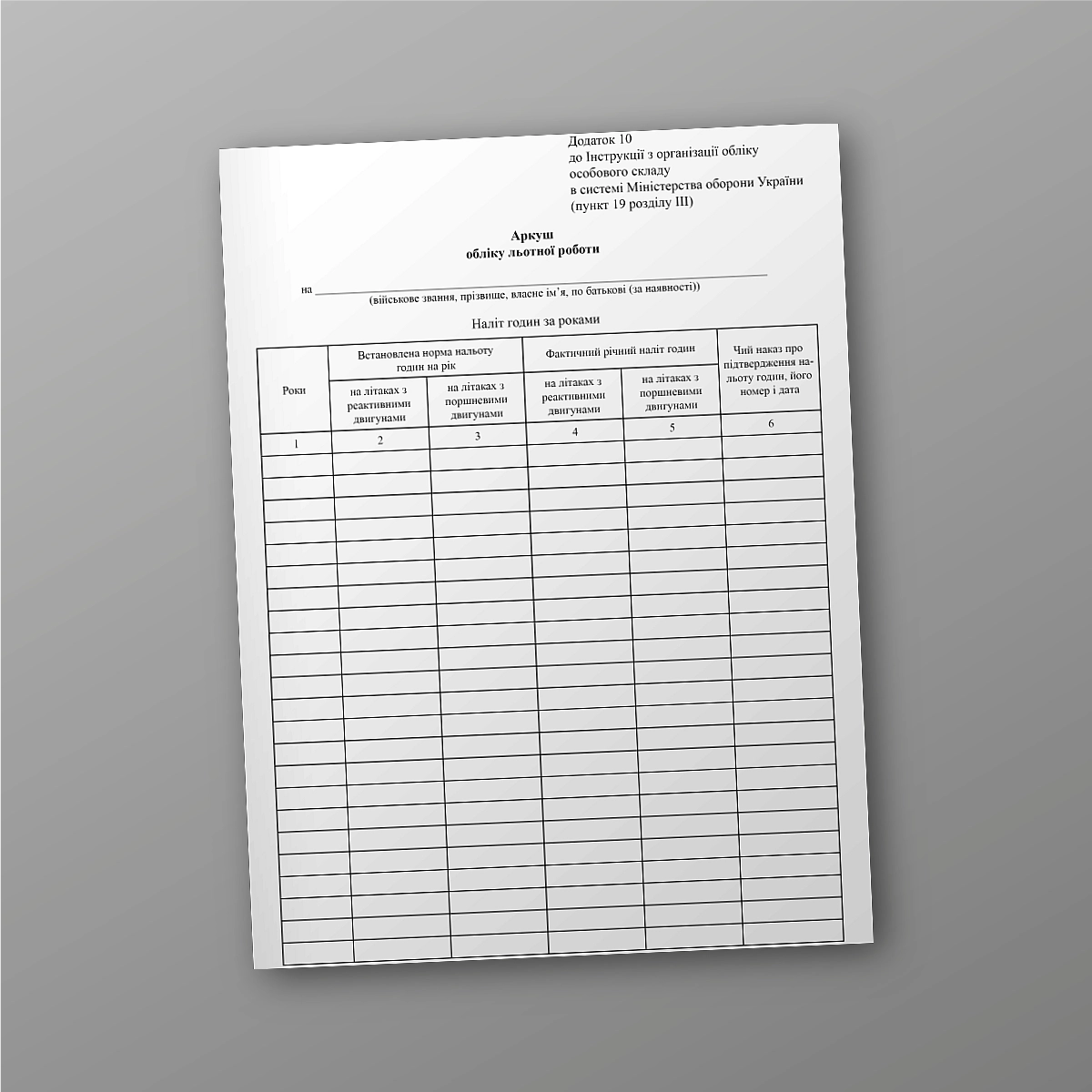 Аркуш обліку льотної роботи.