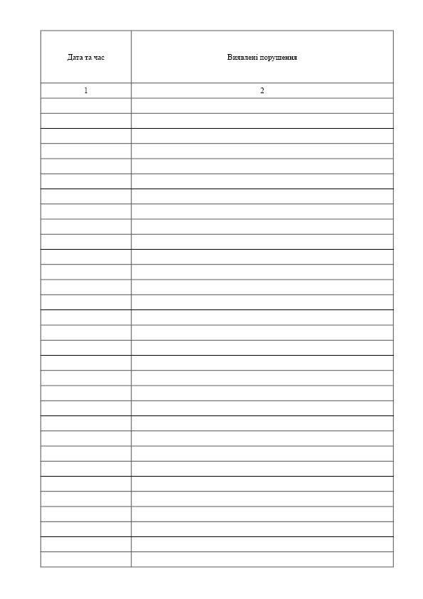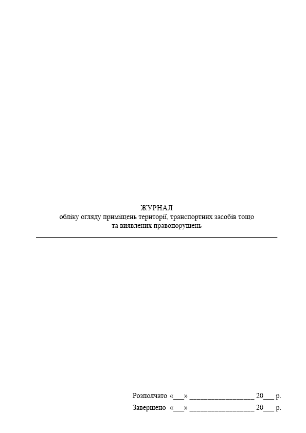 Журнал обліку огляду приміщень території, транспортних засобів тощо та виявлених правопорушень.