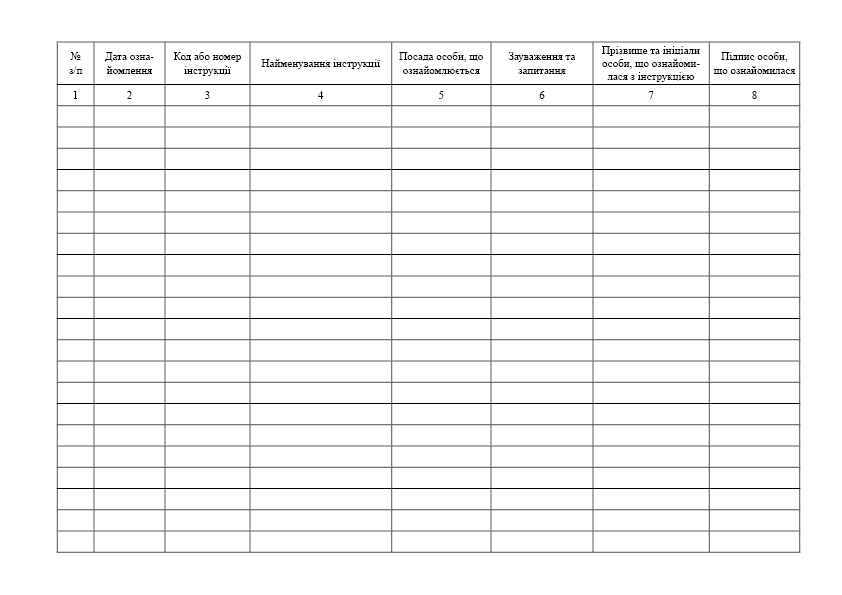 Журнал ознайомлення з посадовими та робочими інструкціями.