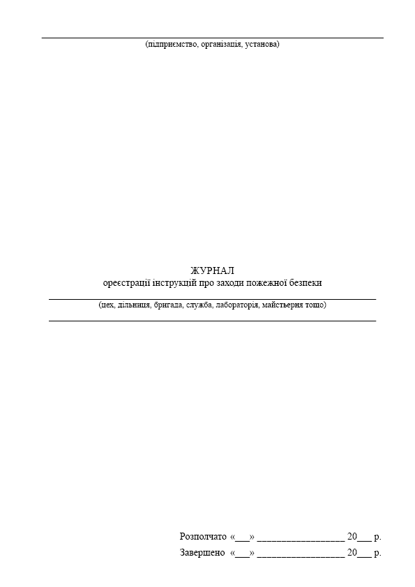 Журнал реєстрації інструкцій про заходи пожежної безпеки.