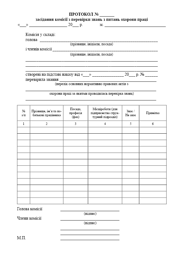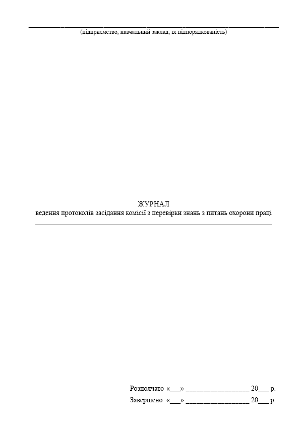 Журнал ведення протоколів засідання комісії з перевірки знань з питань охорони праці.