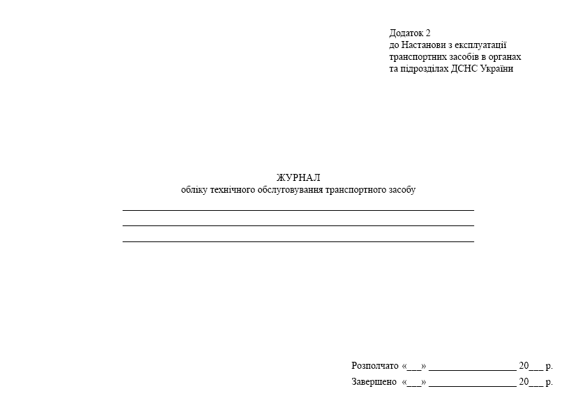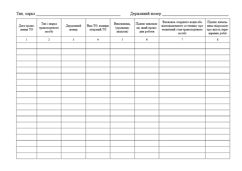 Журнал обліку технічного обслуговування транспортного засобу.