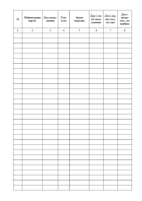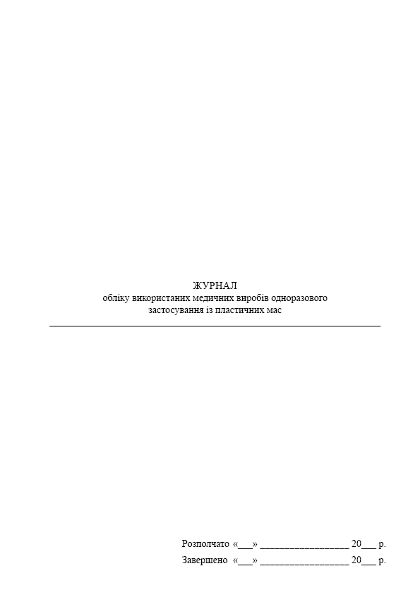 Журнал обліку використаних медичних виробів одноразового застосування із пластичних мас.