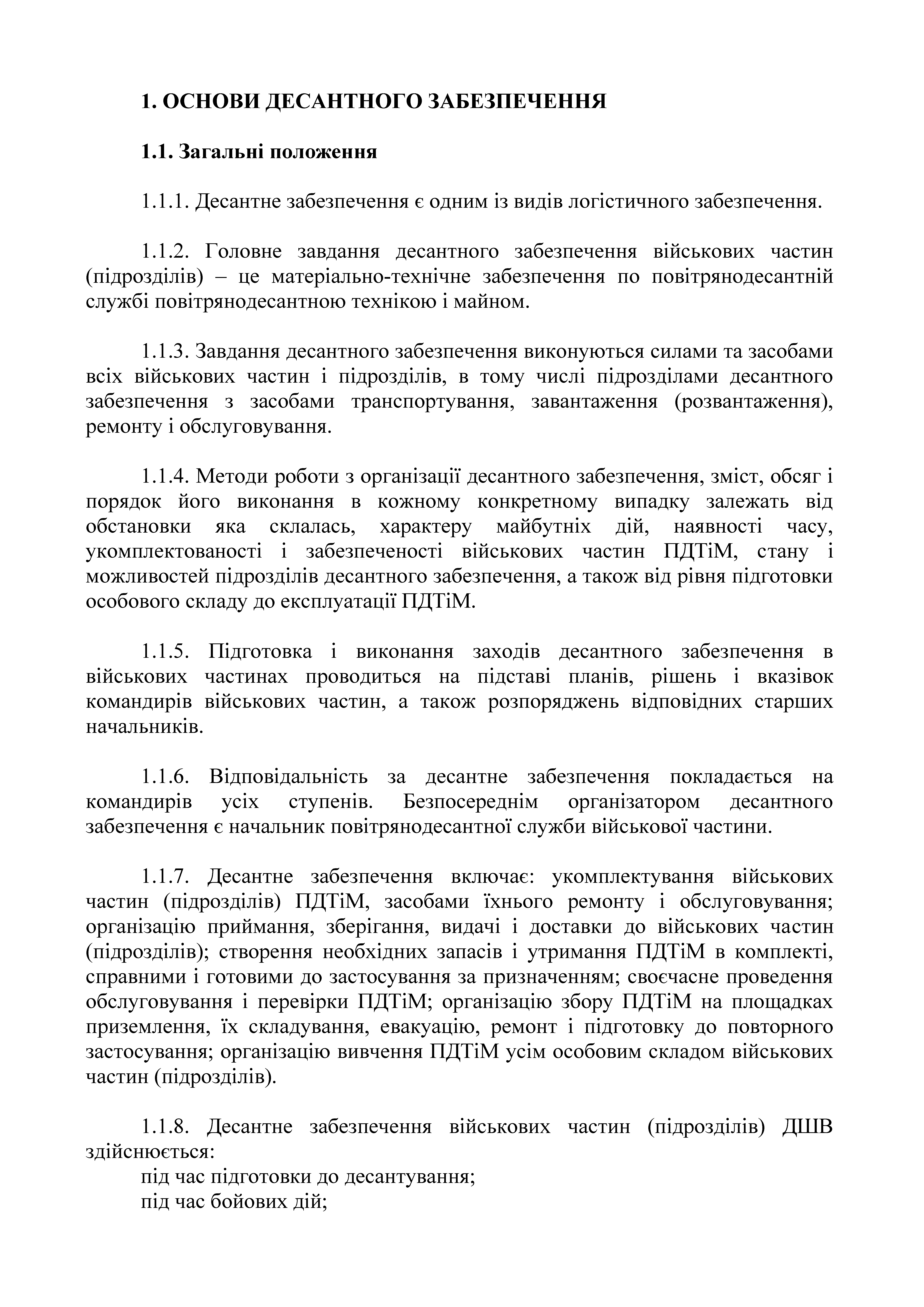 Бойовий статут десантно-штурмових військ Збройних Сил України. Десантне забезпечення.