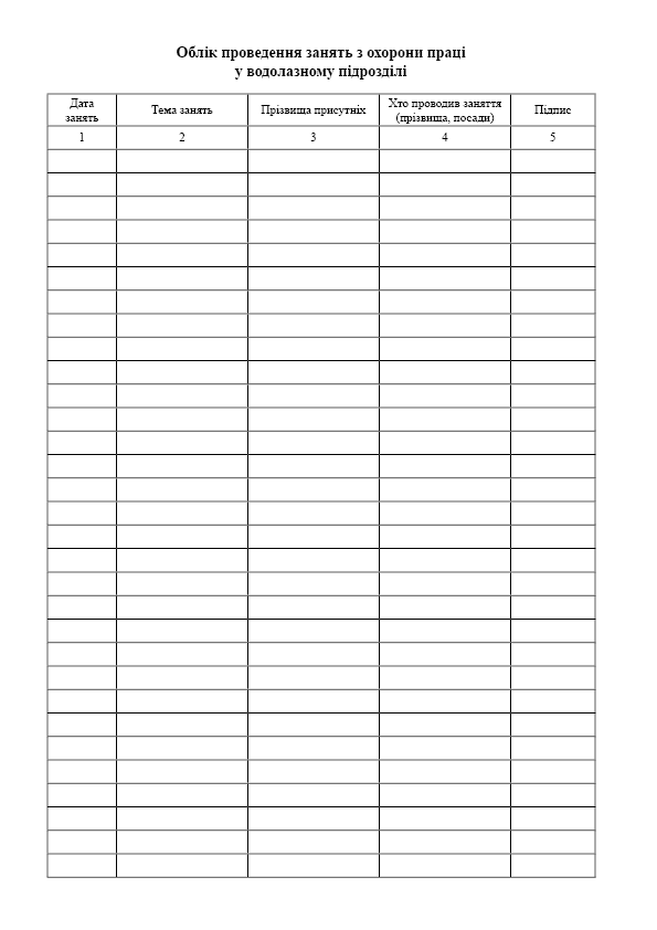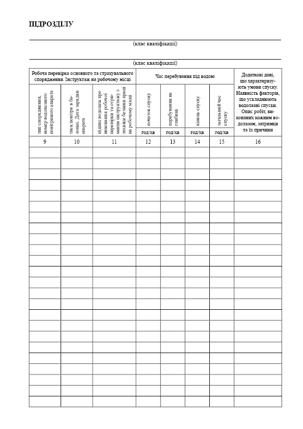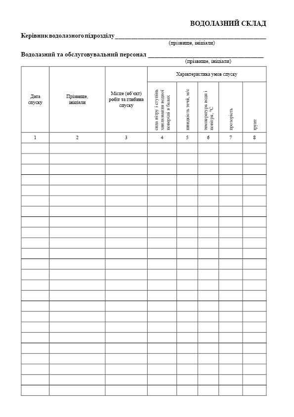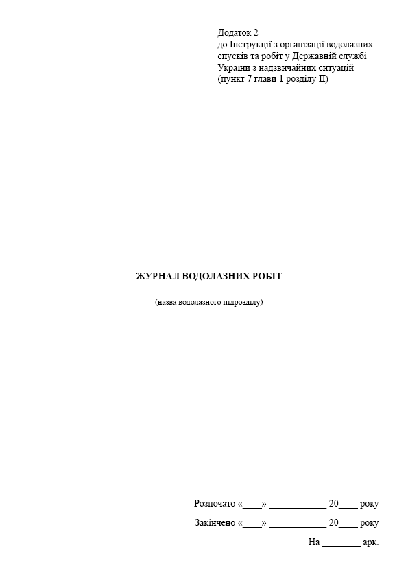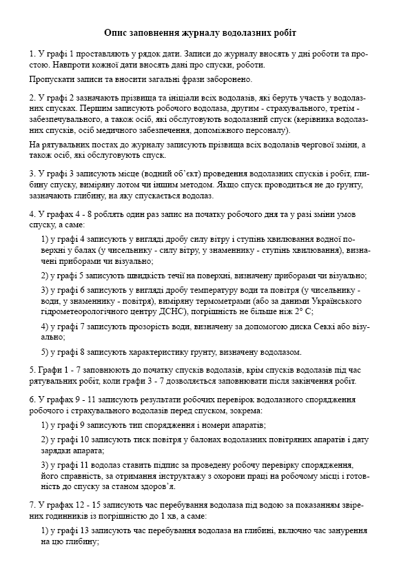 Журнал водолазних робіт.