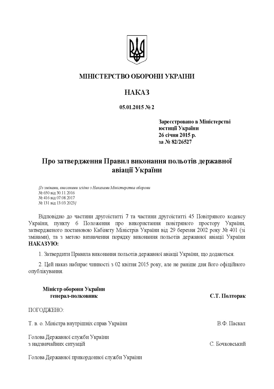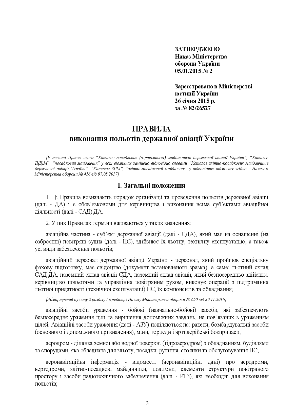 Приказ 2 + Приложения. Об утверждении Правил выполнения полетов государственной авиации Украины.