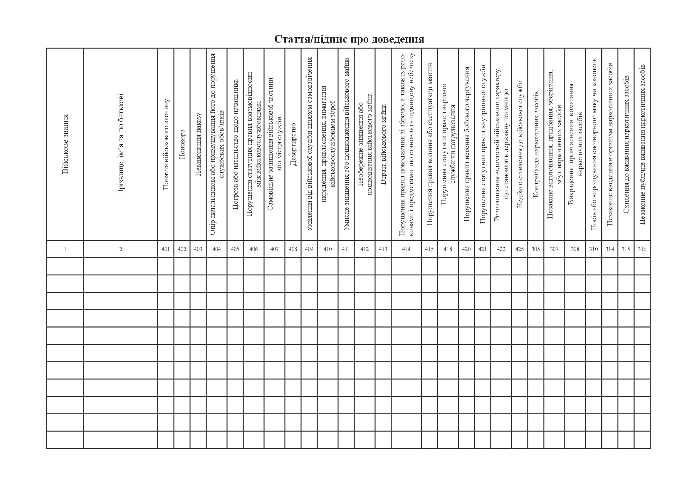 Журнал доведения статей уголовного кодекса о военных преступлениях.
