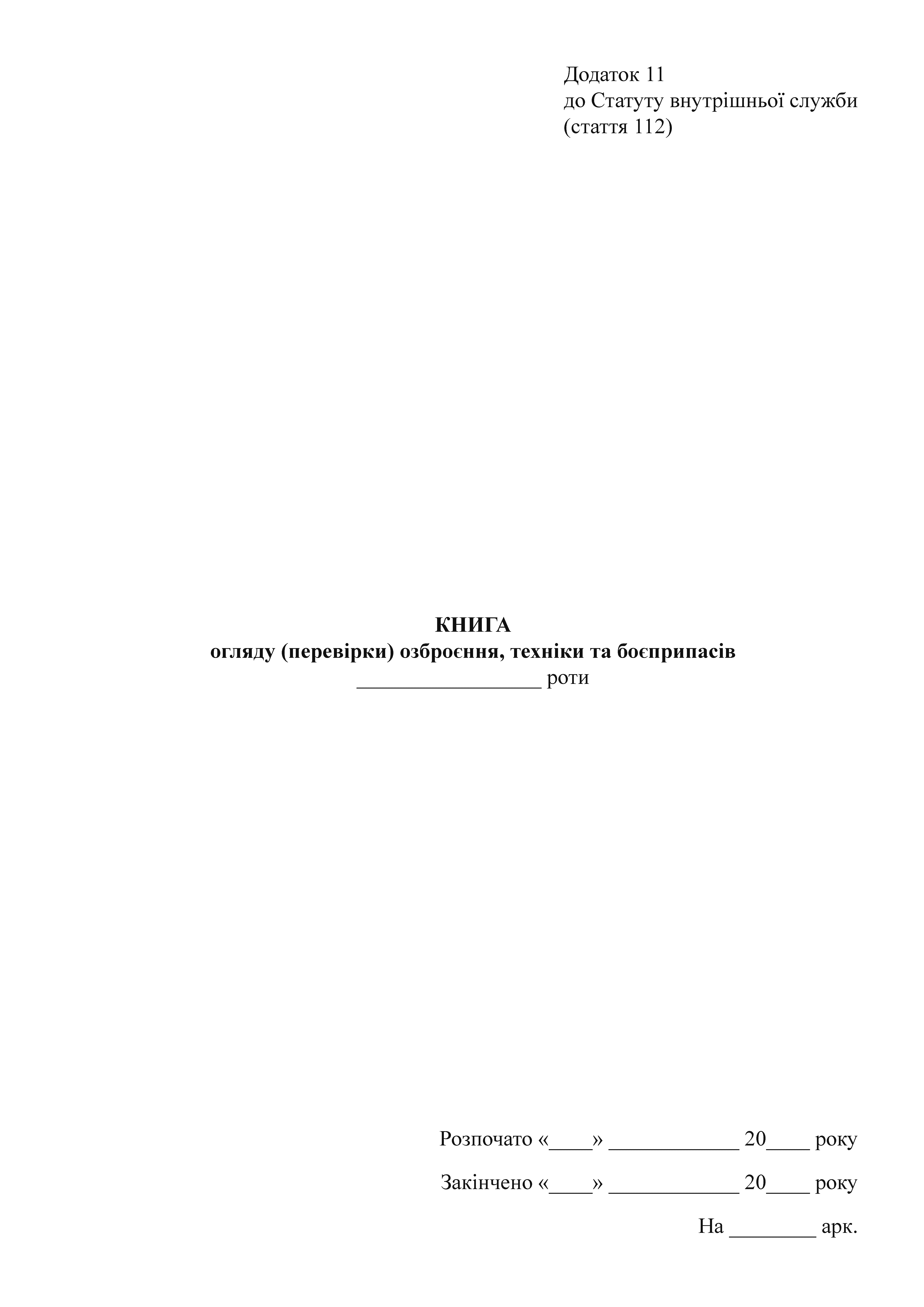 Книга обзора (проверки) вооружения техники и боеприпасов.