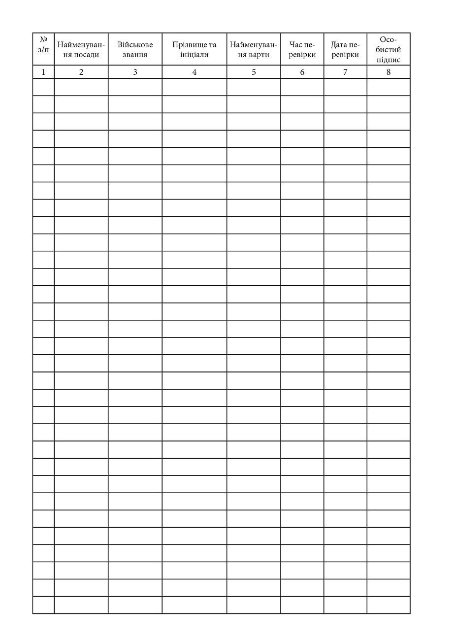 Приложение 7 к Инструкции по особенностям организации часовой и внутренней службы в территориальных подразделениях Государственной службы специального связи и защиты информации Украины (Пункт 6 раздела XI).