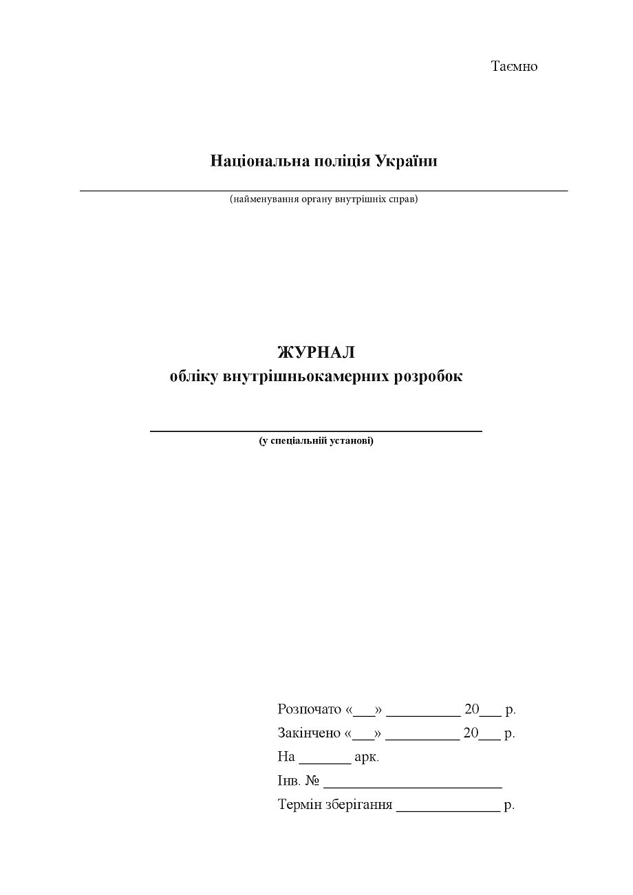 Журнал учета внутрикамерных разработок.Портретная ориентация.