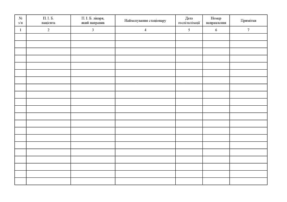 Журнал учета направлений на стационарное лечение.