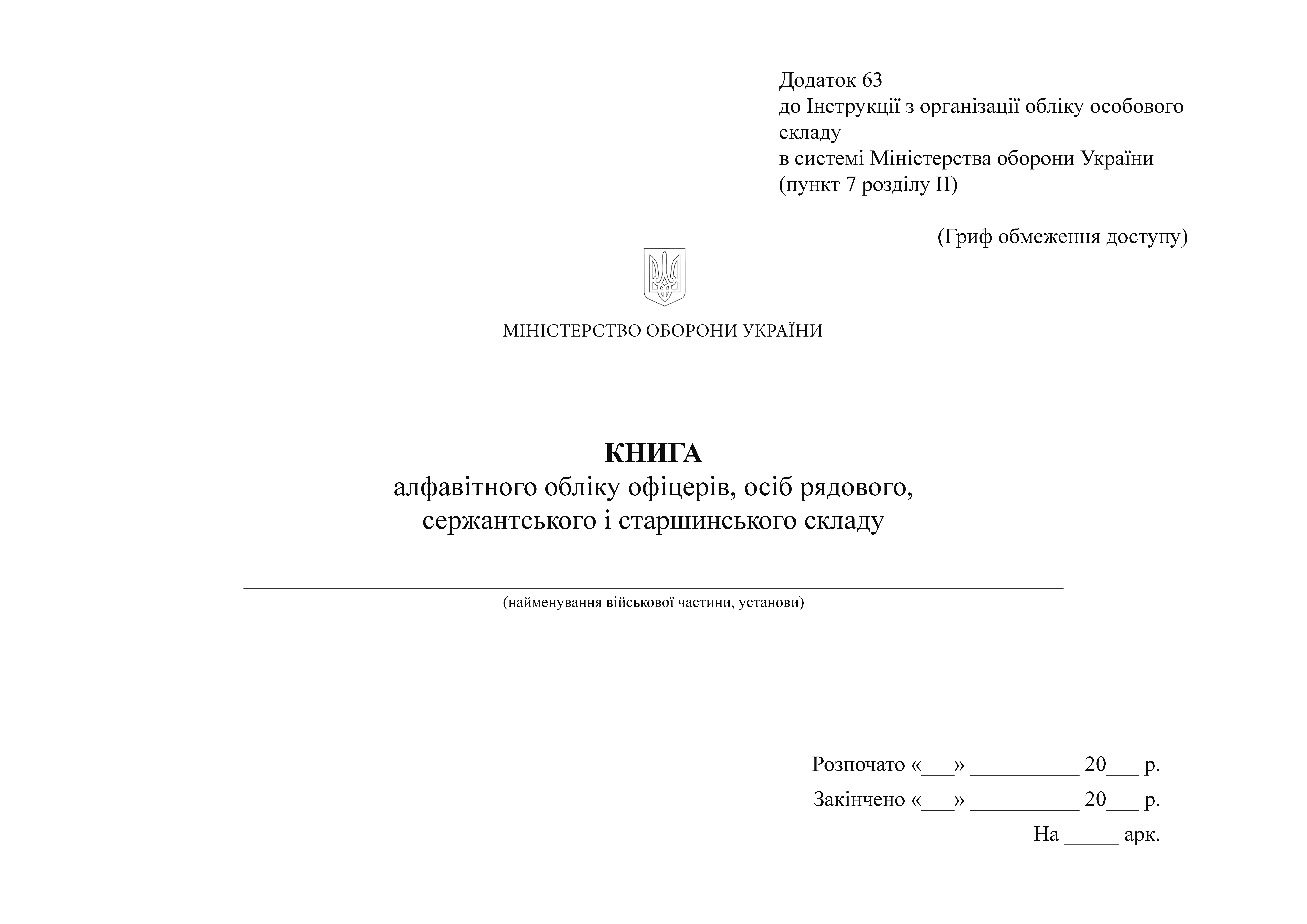 Приложение 63 к Инструкции по организации учета личного состав в системе Министерства обороны Украины (пункт 7 раздела ІІ).