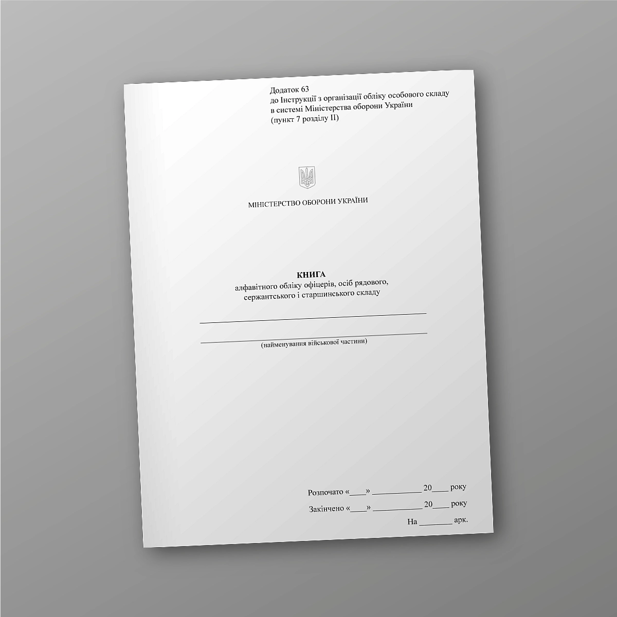 Журнал или книга воинского учета может быть выполнена в мягкой или твердой обложке. Если Вы не нашли нужную книгу для ВСУ или количество страниц и прочее нужно сделать под вашу задачунапишіть нам на e-mail [email protected], мы обязательно свяжемся с Вами. Все военные журналы мы печатаем в соответствии с приказом МО Украины.