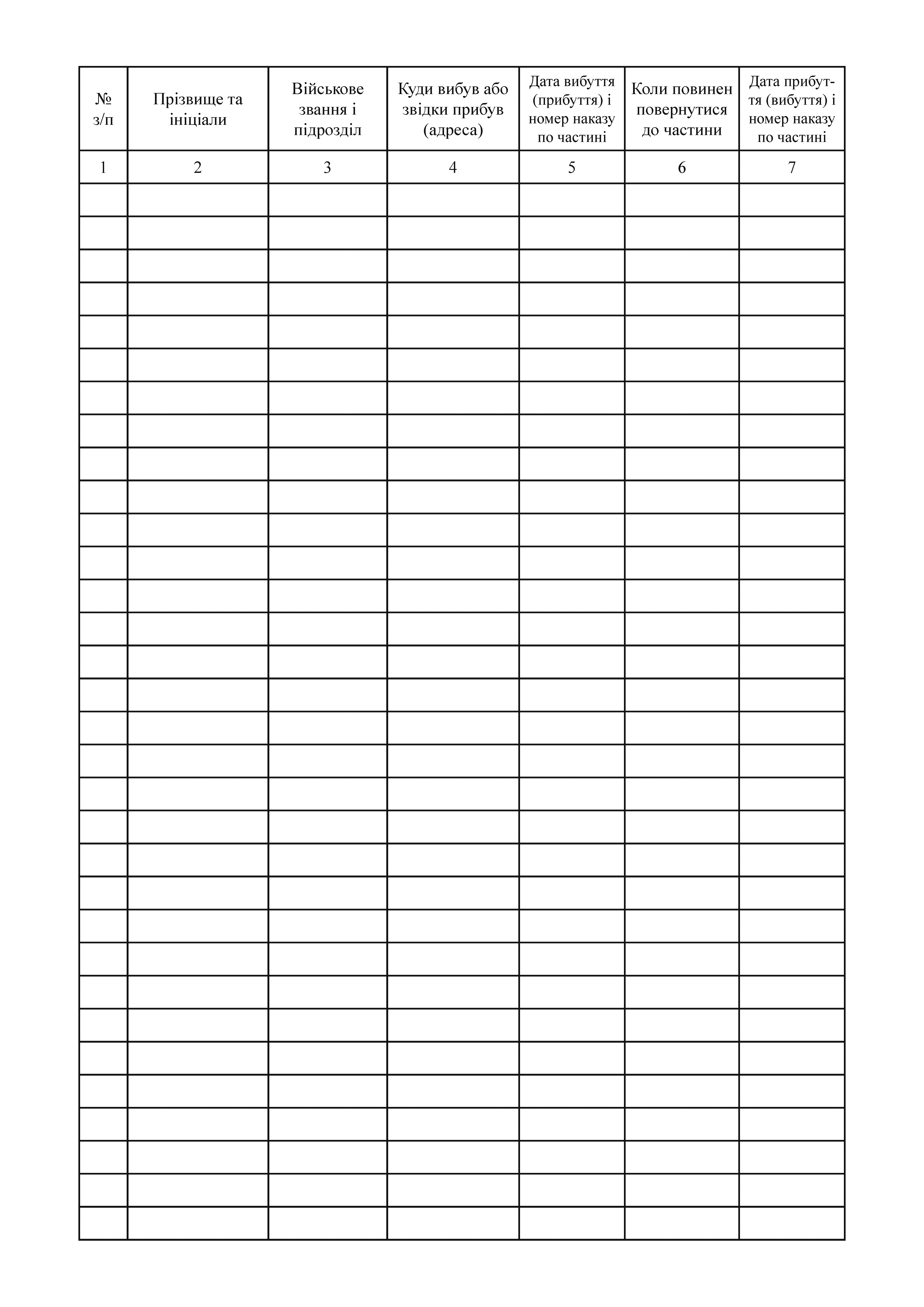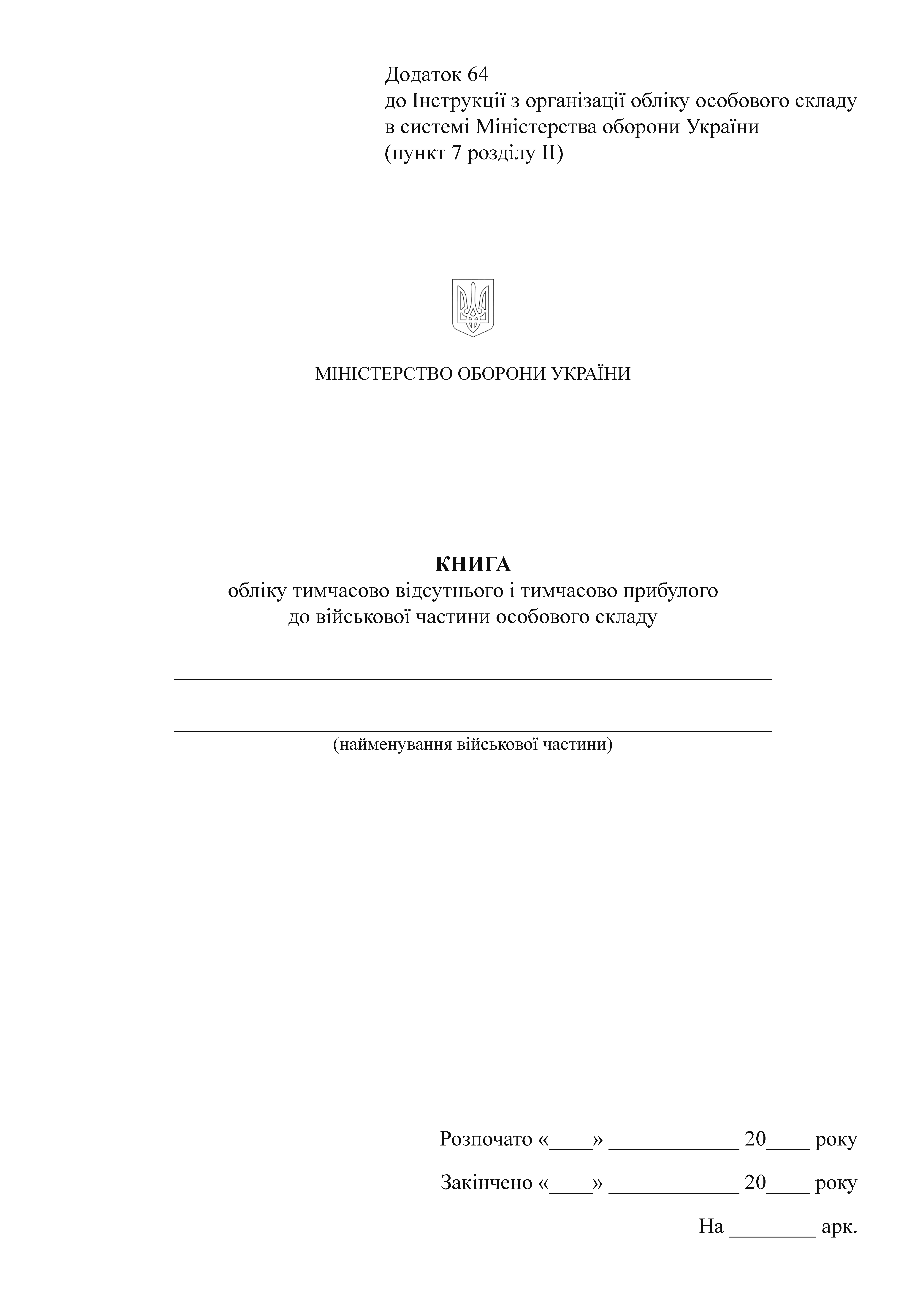 Книга учета временно отсутствующего и временно прибывшего Приложение 64 к Инструкции по организации учета личного состава Вооруженных сил Украины (пункт 2.1 раздела ІІ).