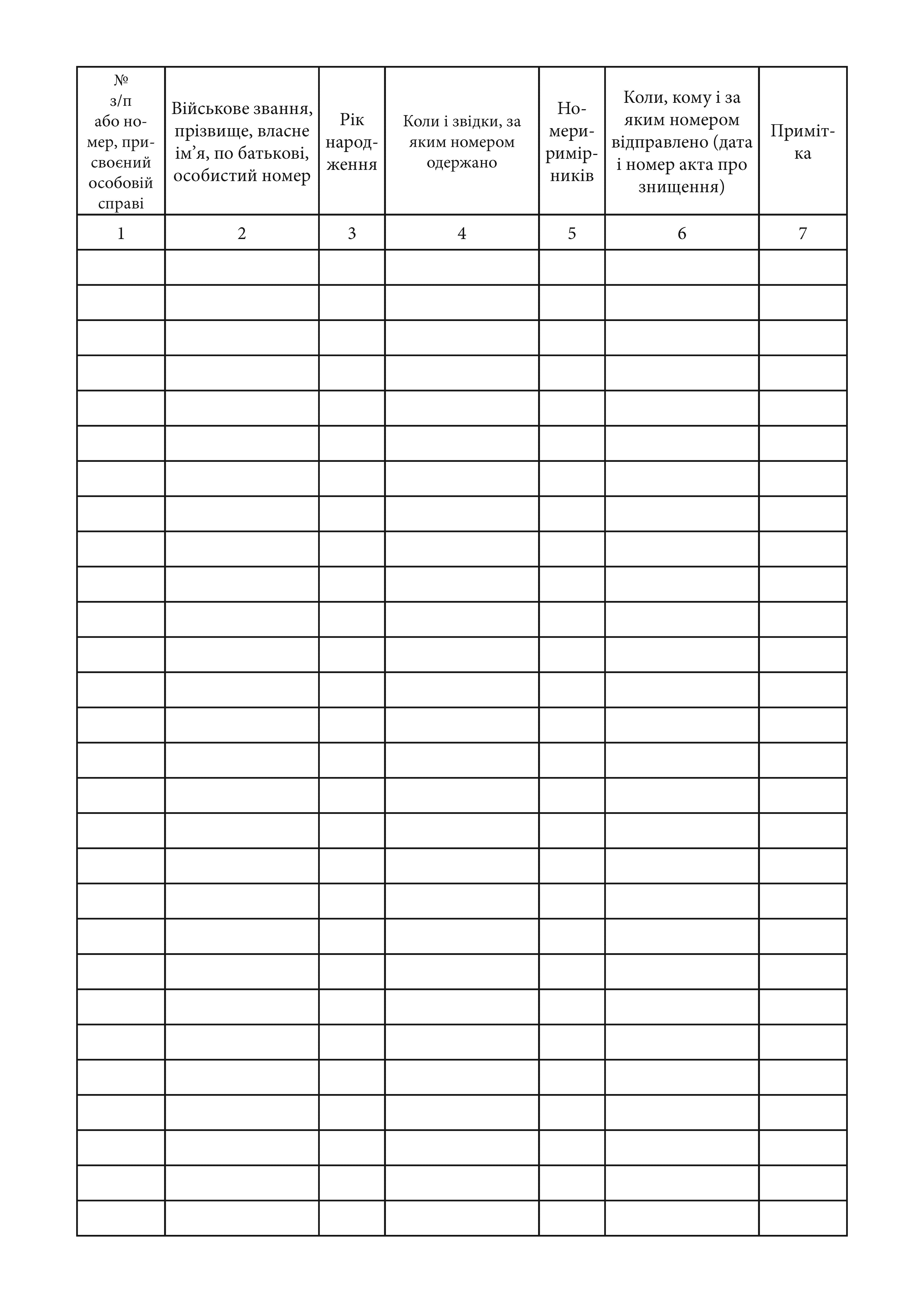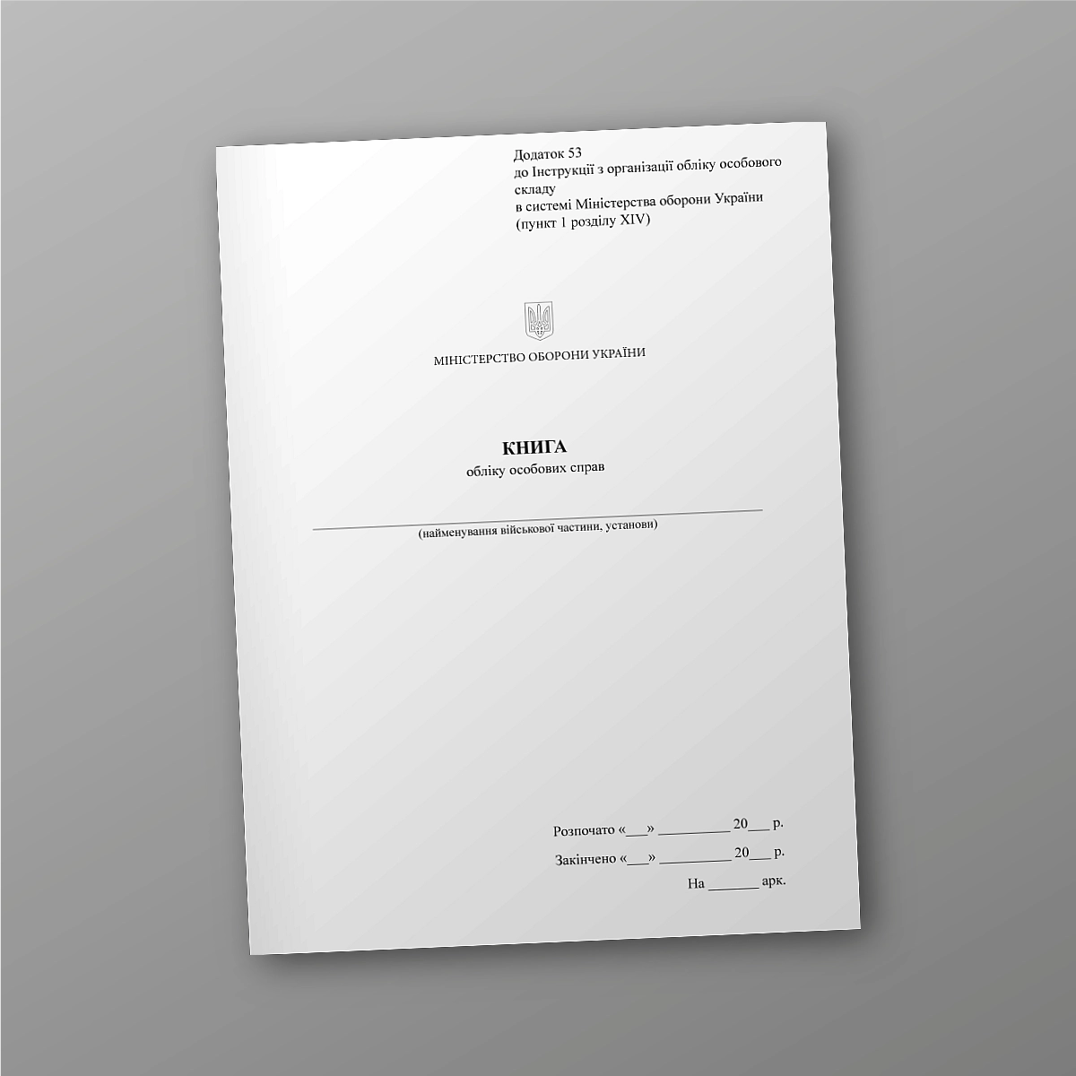 Книга учета личных дел Приложение 53 к Инструкции по организации учета личного состав в системе Министерства обороны Украины (пункт 1 раздела XIV).