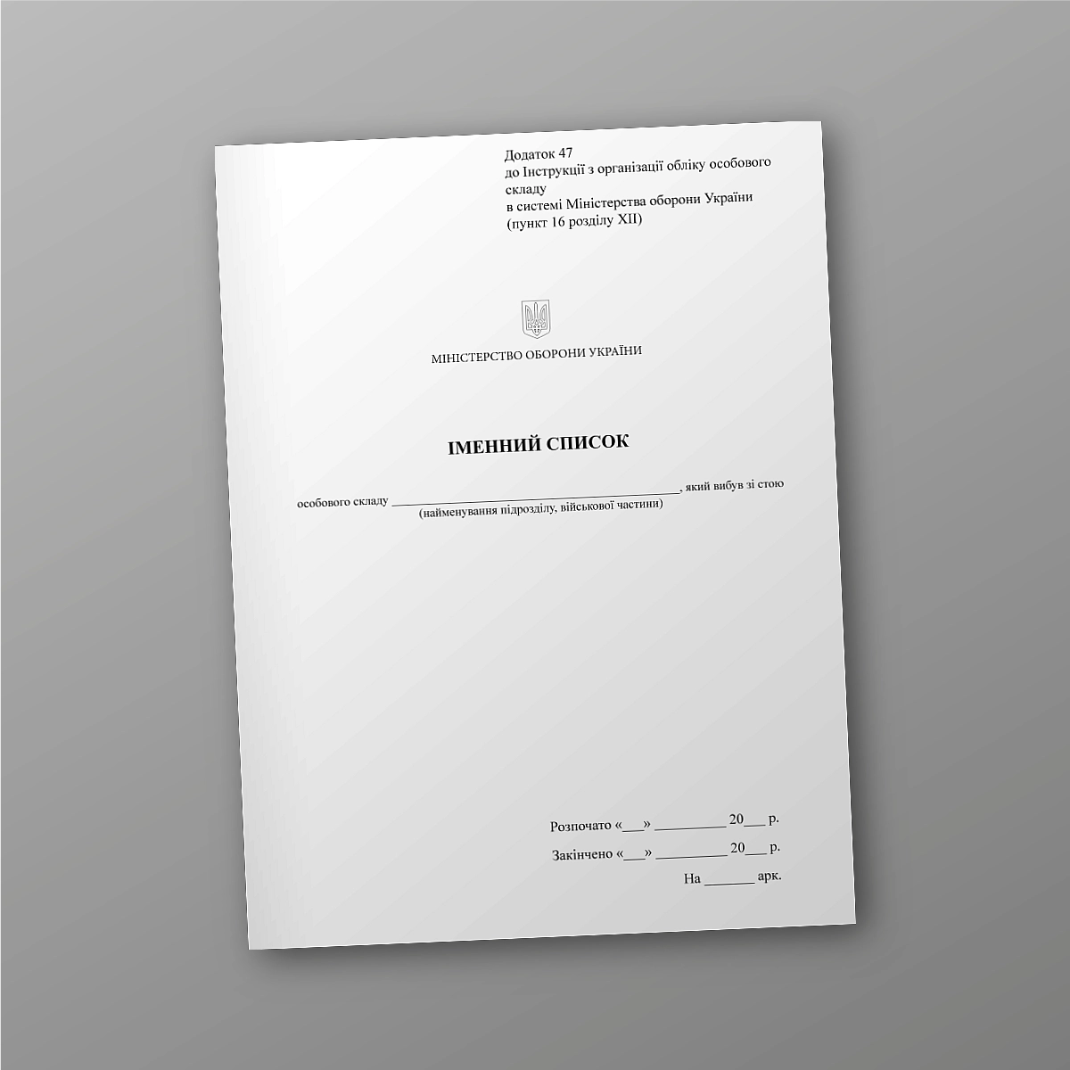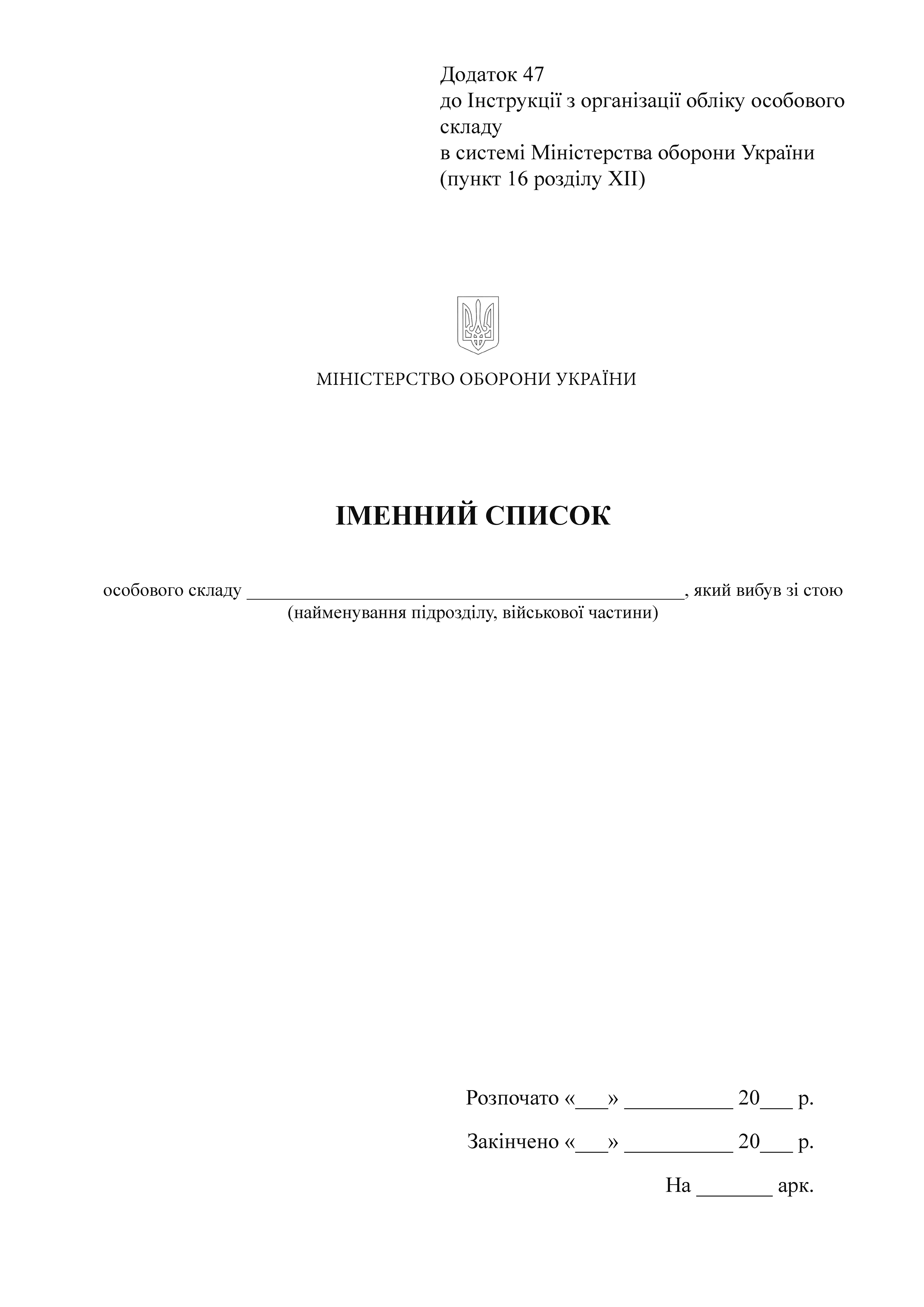Приложение 47 к Инструкции по организации учета личного состав в системе Министерства обороны Украины (пункт 16 раздела XII).