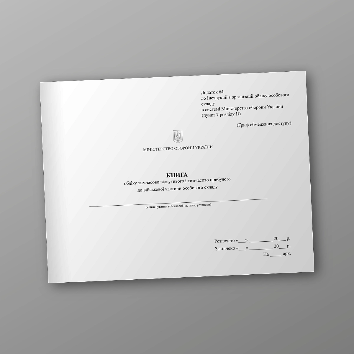 Журнал или книга воинского учета может быть выполнена в мягкой или твердой обложке. Если Вы не нашли нужную книгу для ВСУ или количество страниц и прочее нужно сделать под вашу задачунапишіть нам на e-mail [email protected], мы обязательно свяжемся с Вами. Все военные журналы мы печатаем в соответствии с приказом МО Украины.
