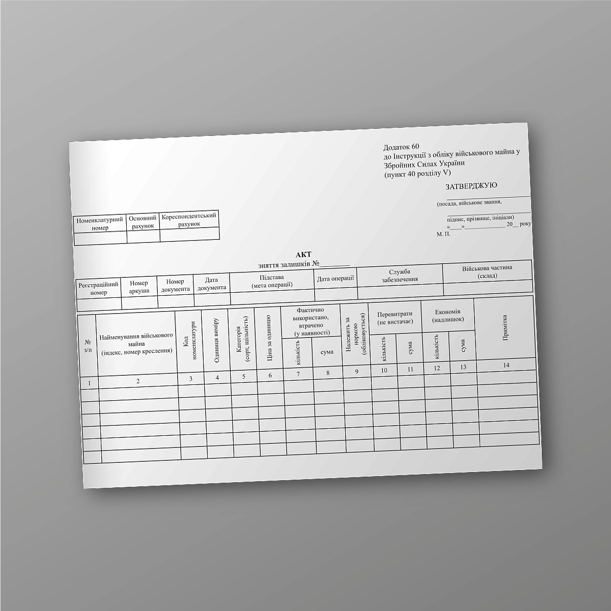 Приложение 59 к Инструкции по учету военного имущества в Вооруженных Силах Украины (пункт 40 раздела V).