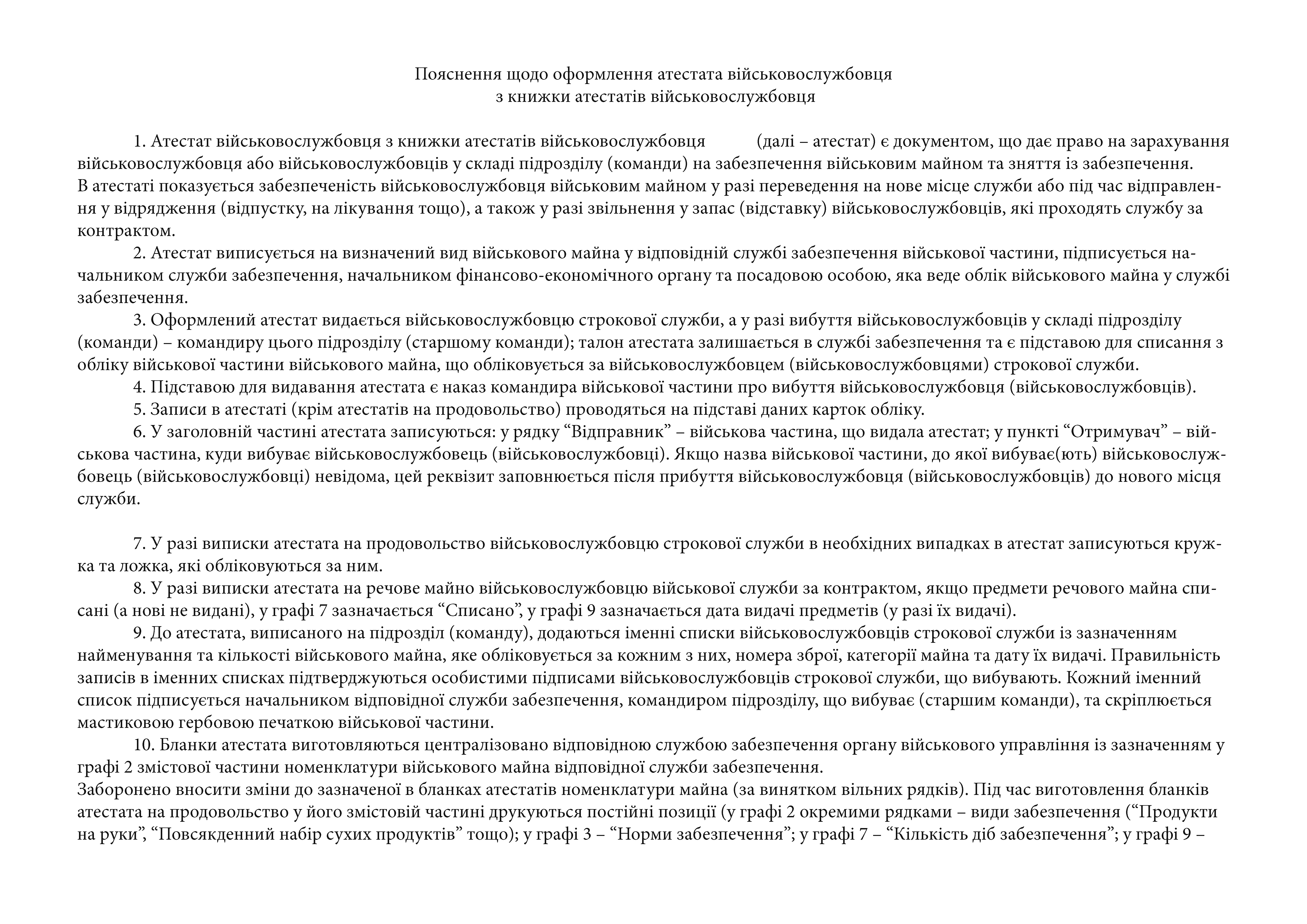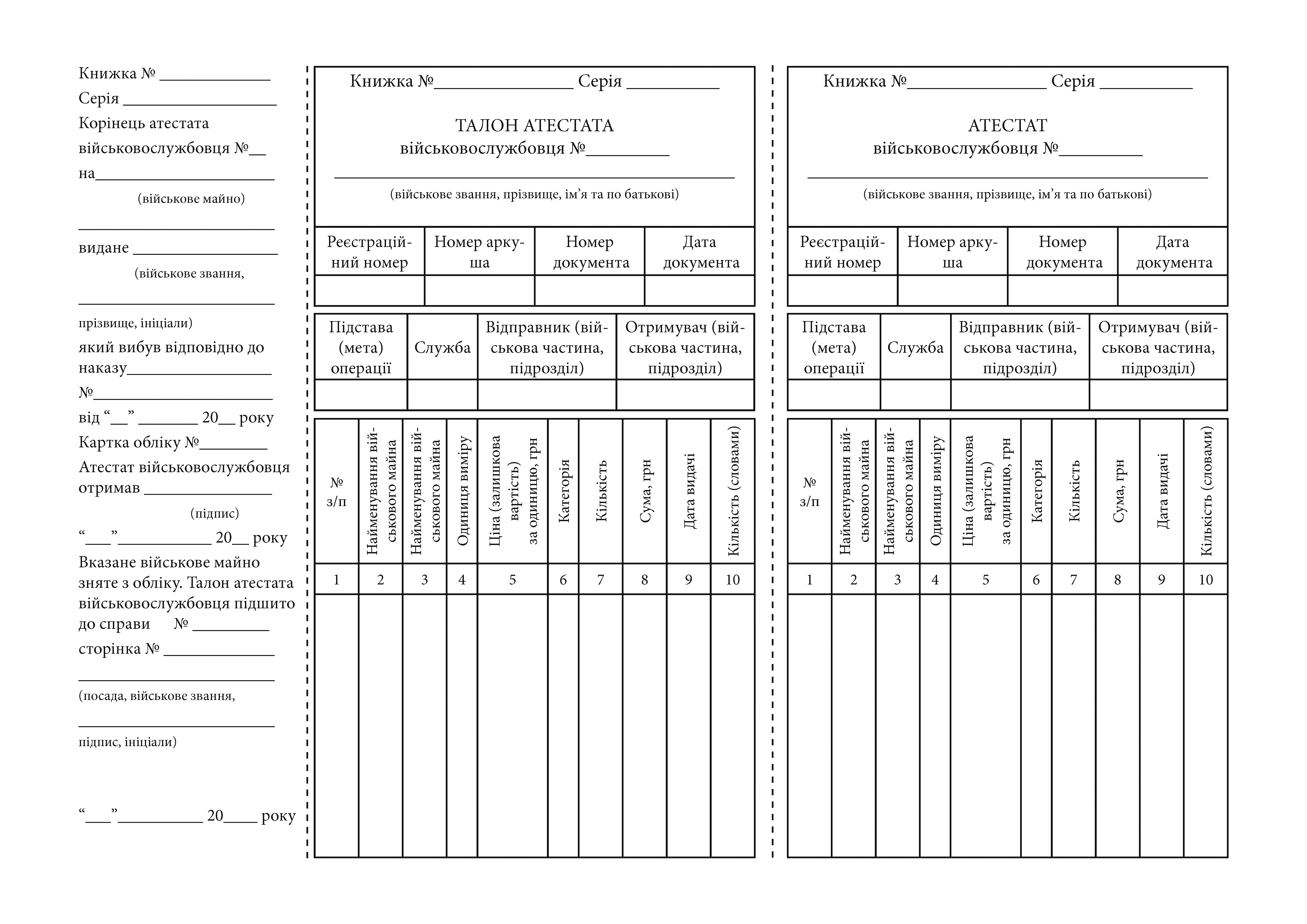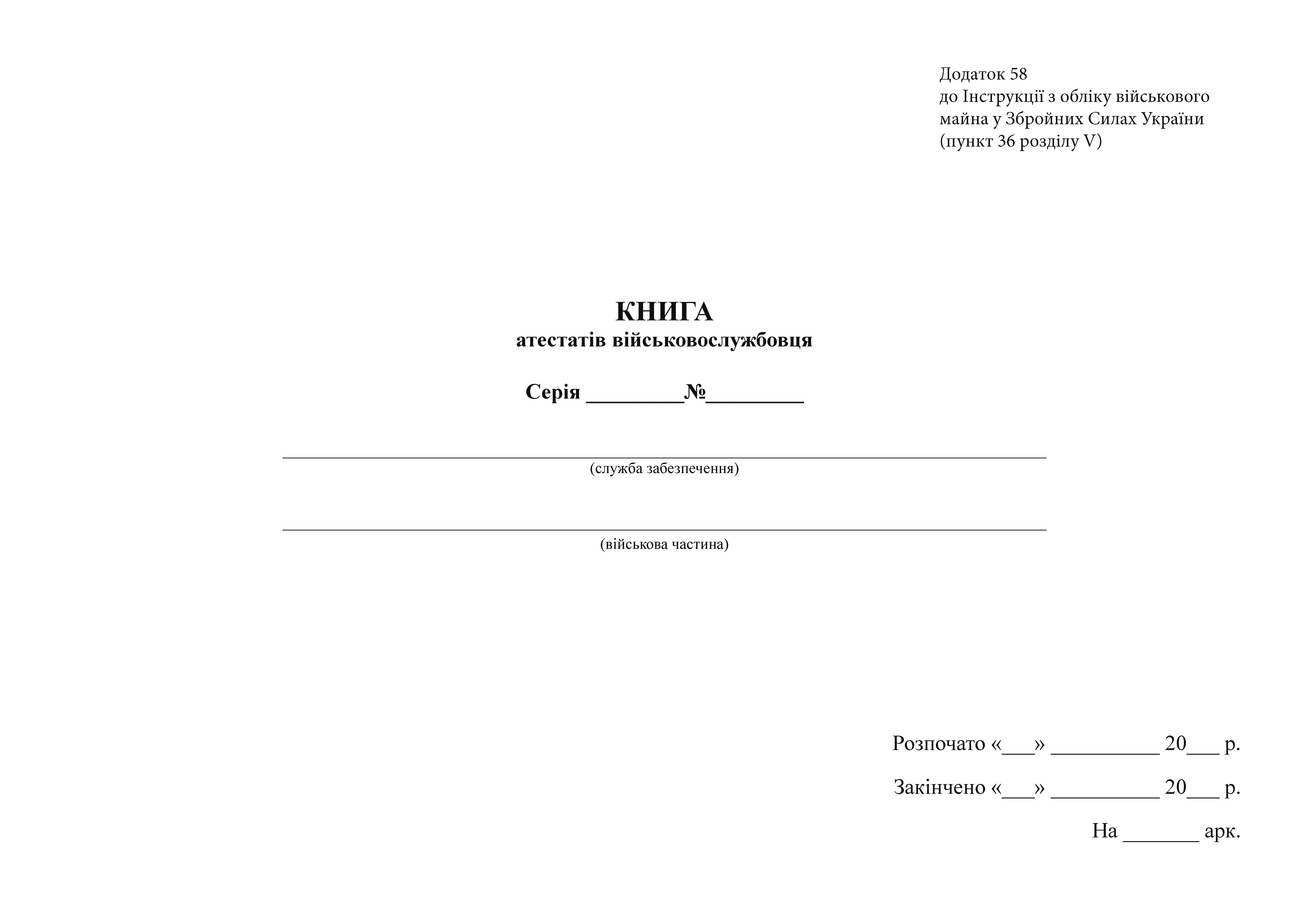 Книга аттестатов военнослужащего Приложение 58 к Инструкции по учету военного имущества в Вооруженных Силах Украины (пункт 36 раздела V).