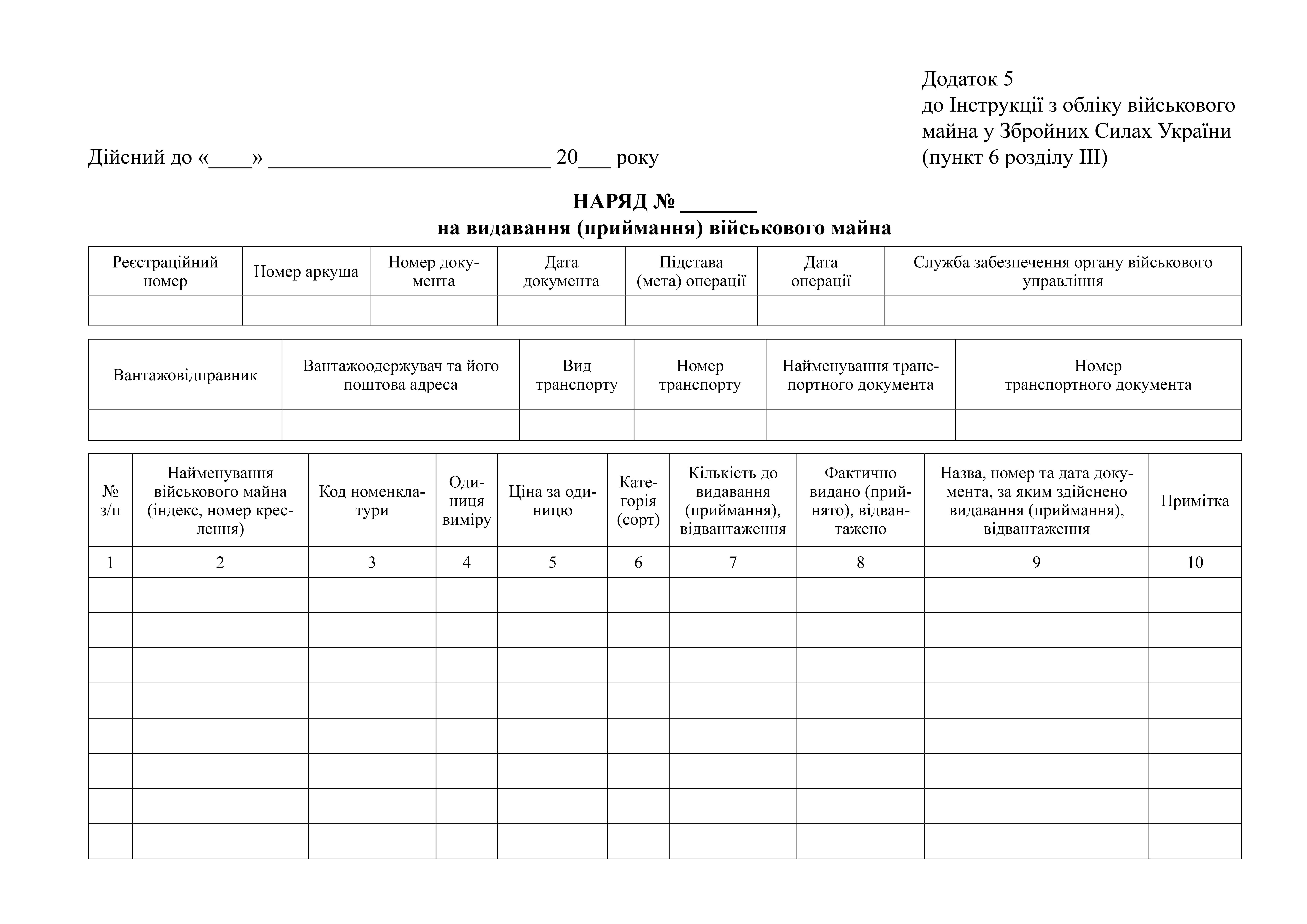 Наряд на выдачу (приемку) военного имущества.