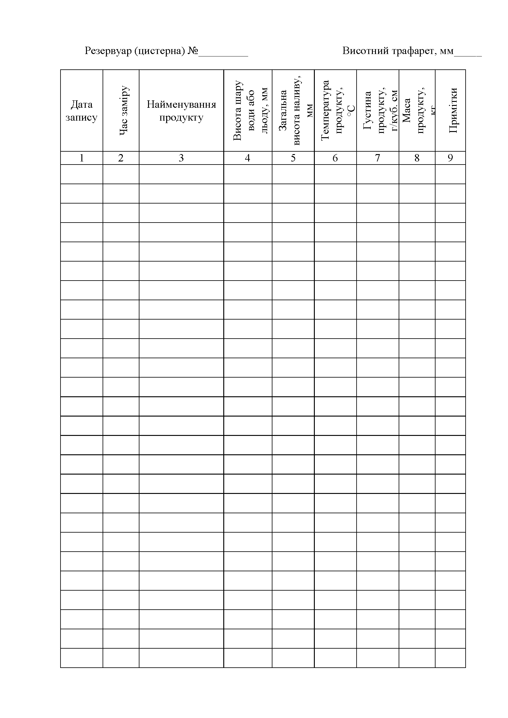 Книгу учета замеров в резервуарах (цистернах).