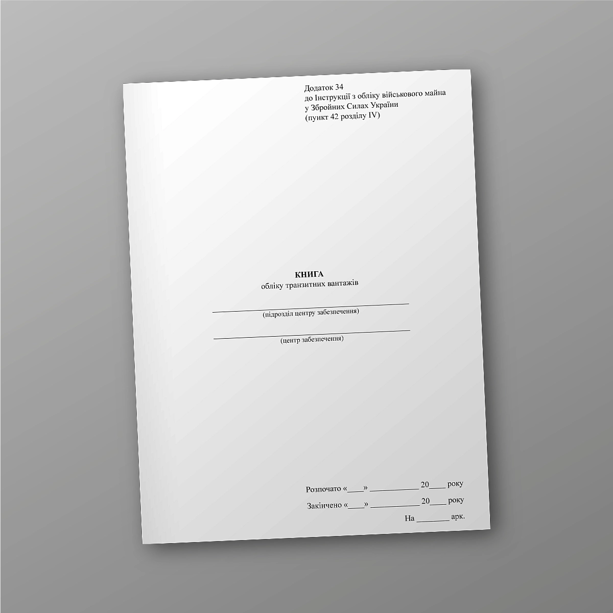 Книга учета транзитных грузов Приложение 34 к Инструкции по учету военного имущества в Вооруженных Силах Украины (пункт 42 раздела IV) .