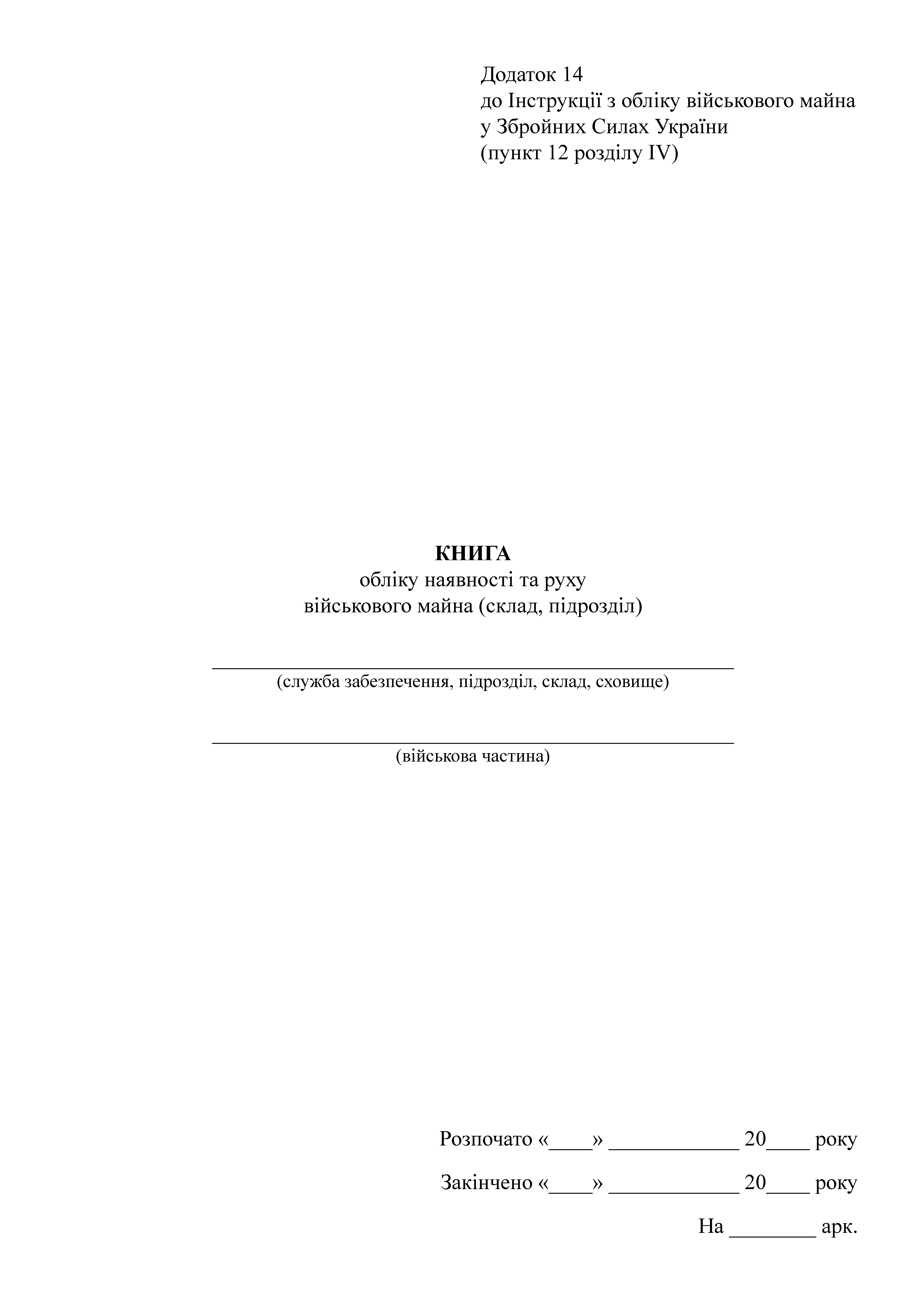 Приказ 440 Приложение 13 (Новая редакция Приложение 14) к Инструкции по учету военного имущества в Вооруженных Силах Украины (пункт 12 раздела IV).