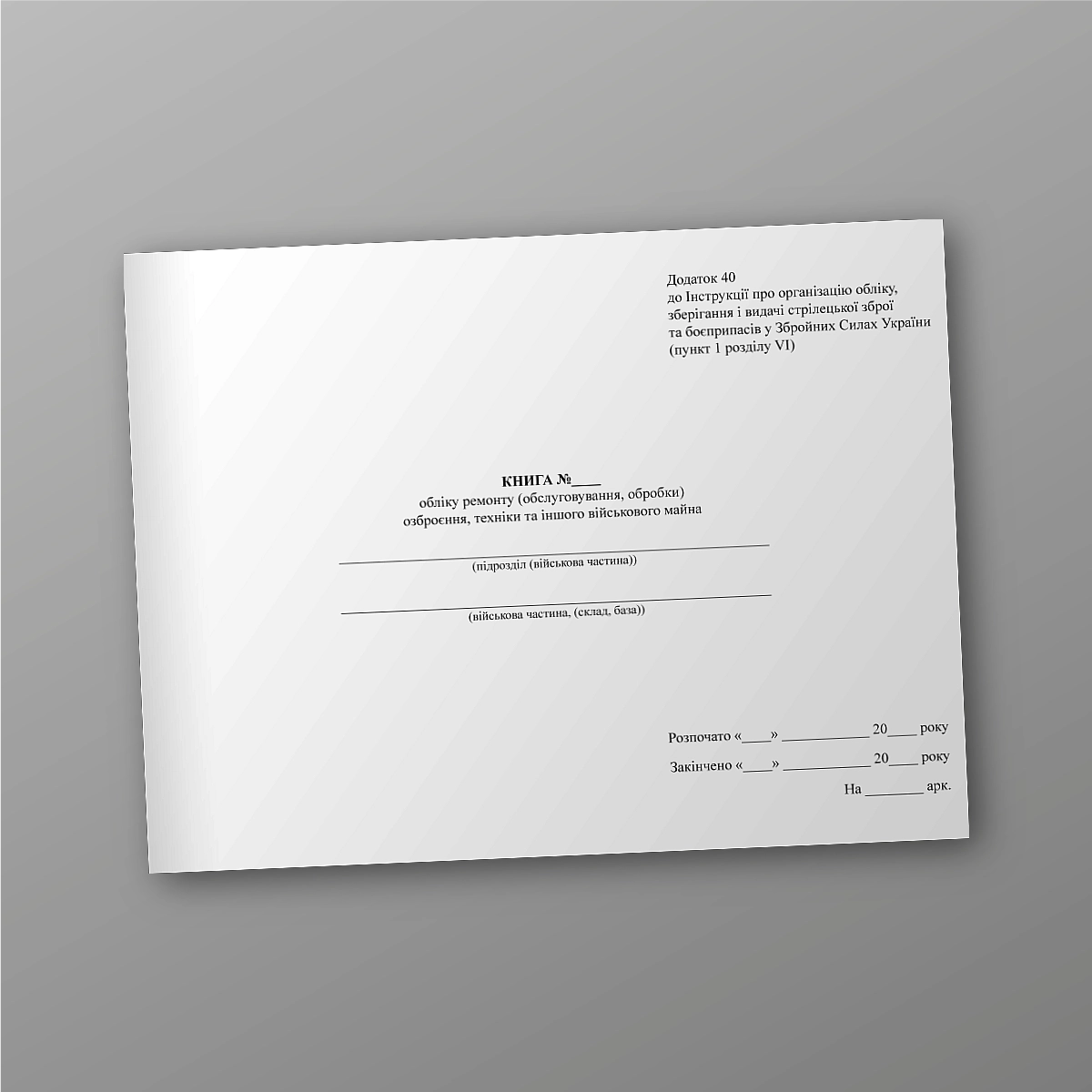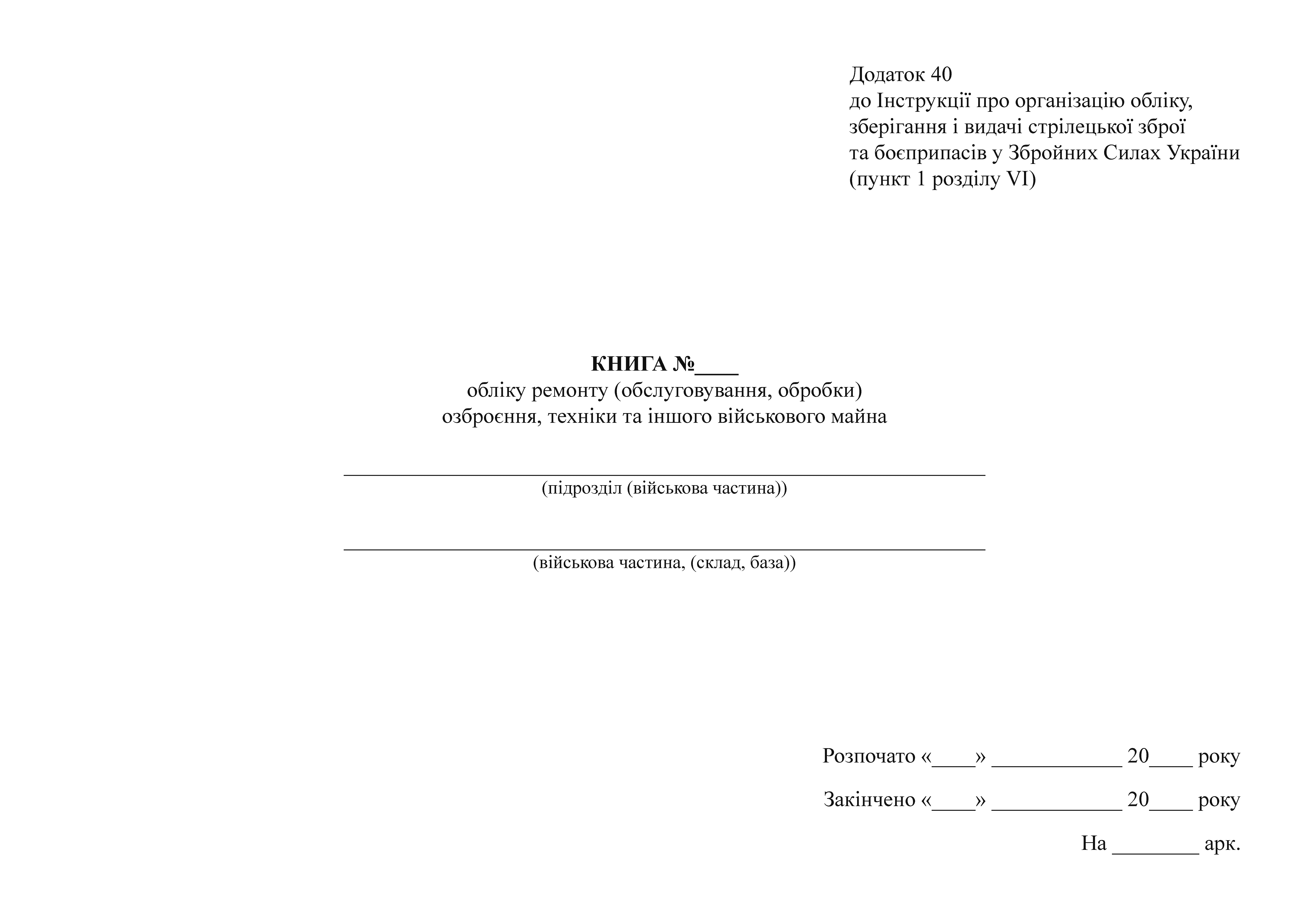 Приложение 40 к Инструкции об организации учета, хранения и выдачи стрелкового оружия и боеприпасов в Вооруженных Силах Украины (пункт 1 раздела VI).