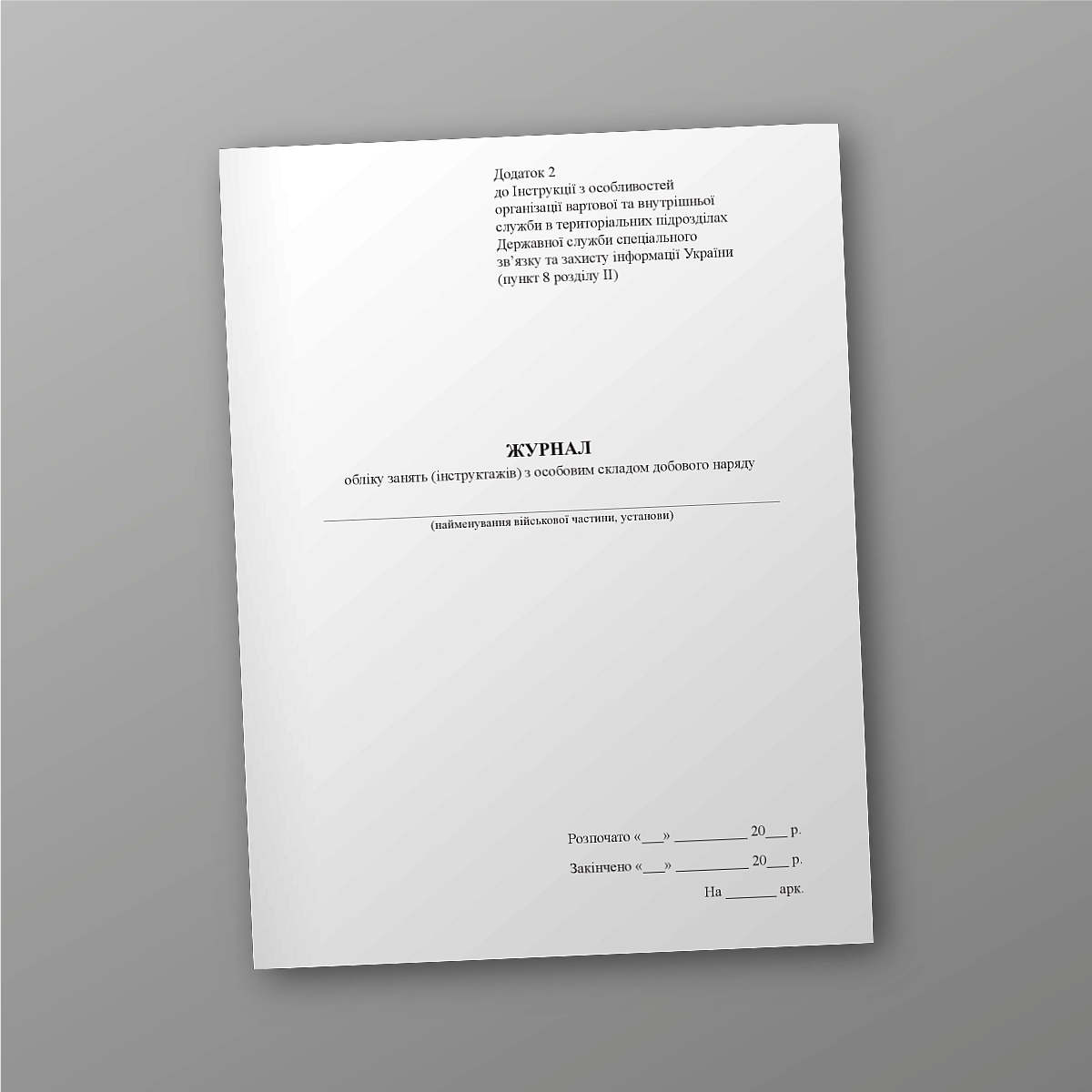 Приложение 2 к Инструкции по особенностям организации часовой и внутренней службы в территориальных подразделениях Государственной службы специального связи и защиты информации Украины (Пункт 8 раздела II).