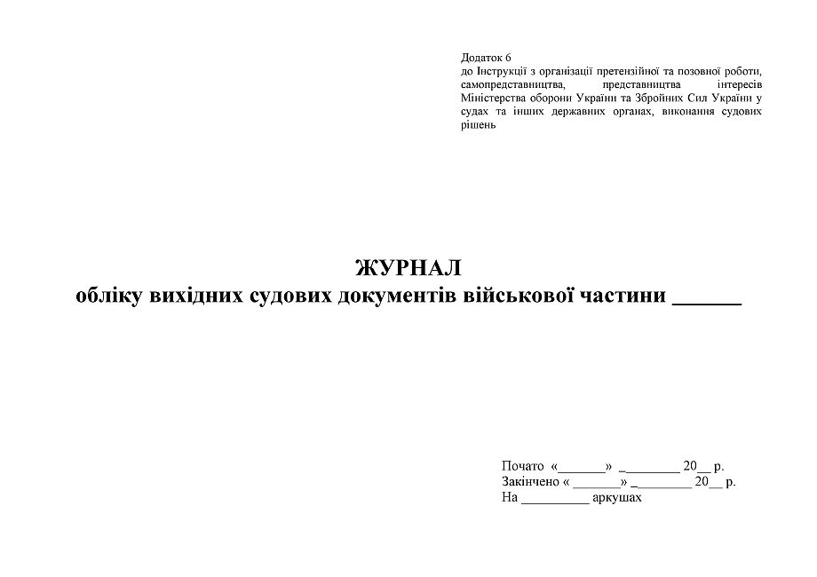 Приложение 6 к Инструкции по организации претензионной и исковой работы, самопредставительству, представительству интересов Министерства обороны Украины и Вооруженных Сил Украины в судах и других государственных органах, исполнение судебных решений.
