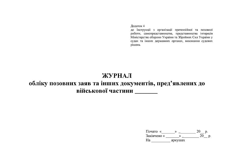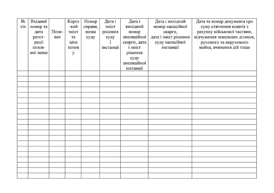 Приложение 4 к Инструкции по организации претензионной и исковой работы, самопредставительству, представительству интересов Министерства обороны Украины и Вооруженных Сил Украины в судах и других государственных органах, исполнение судебных решений.