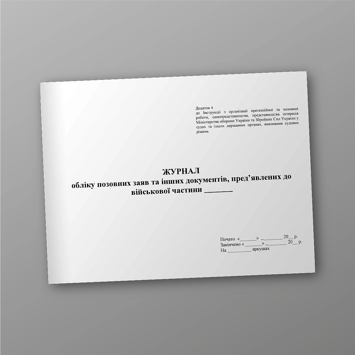 Журнал или книга воинского учета может быть выполнена в мягкой или твердой обложке. Если Вы не нашли нужную книгу для ВСУ или количество страниц и прочее нужно сделать под вашу задачунапишіть нам на e-mail [email protected], мы обязательно свяжемся с Вами. Все военные журналы мы печатаем в соответствии с приказом МО Украины.