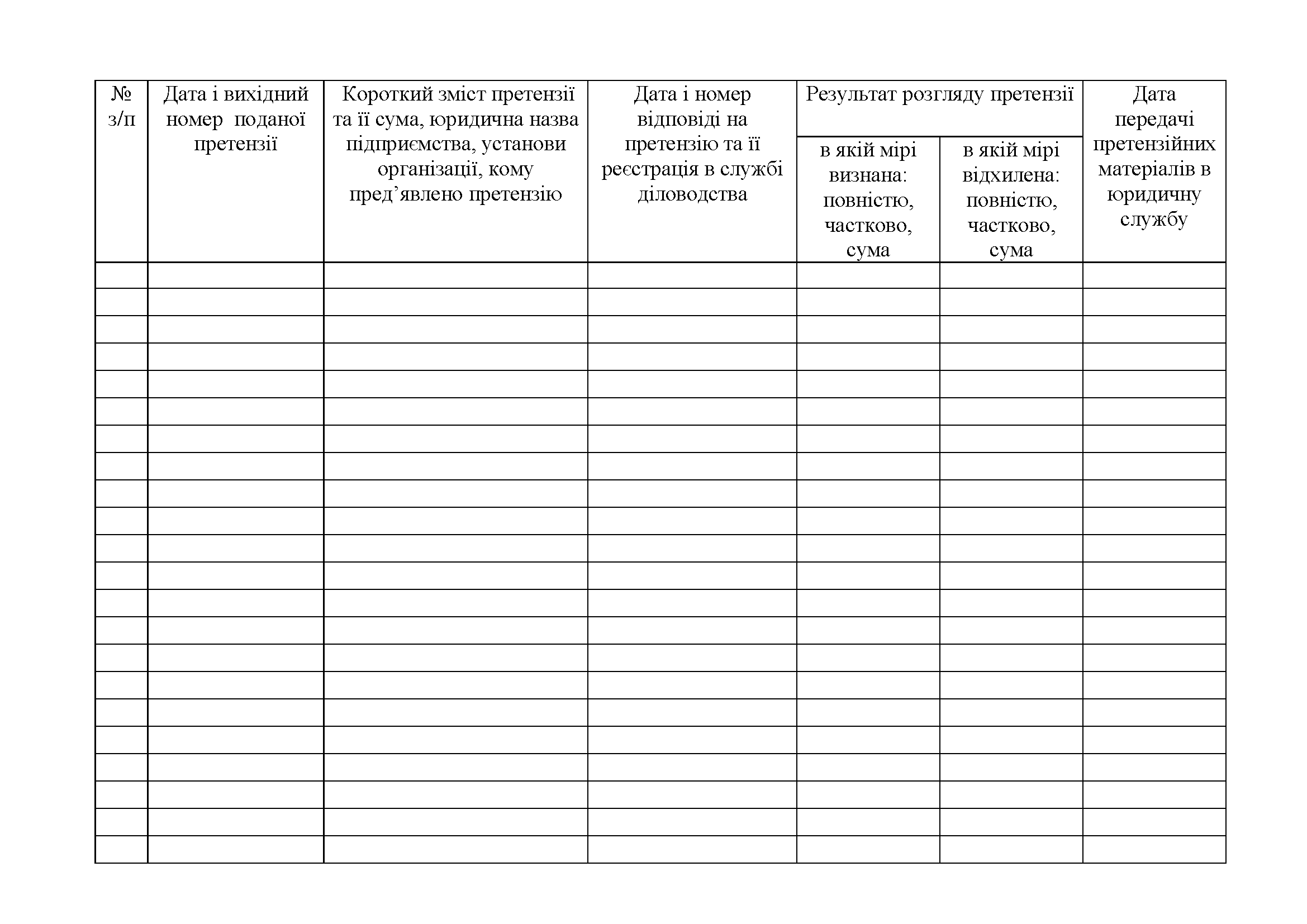 Журнал учета претензий предъявленных ВЧ___.