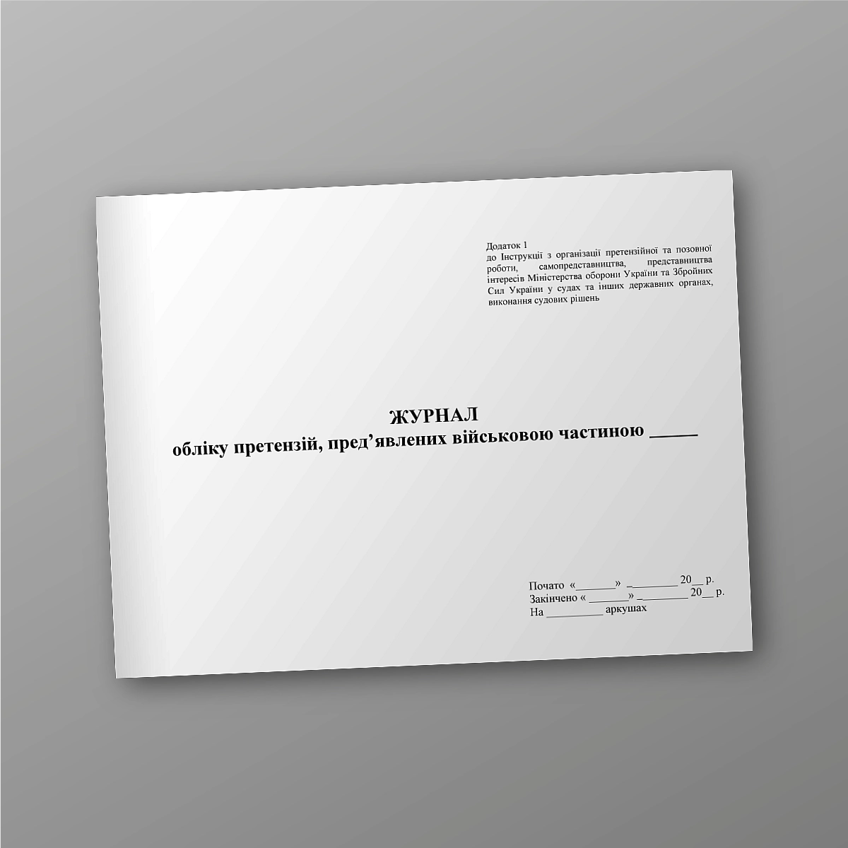 Журнал или книга воинского учета может быть выполнена в мягкой или твердой обложке. Если Вы не нашли нужную книгу для ВСУ или количество страниц и прочее нужно сделать под вашу задачунапишіть нам на e-mail [email protected], мы обязательно свяжемся с Вами. Все военные журналы мы печатаем в соответствии с приказом МО Украины.