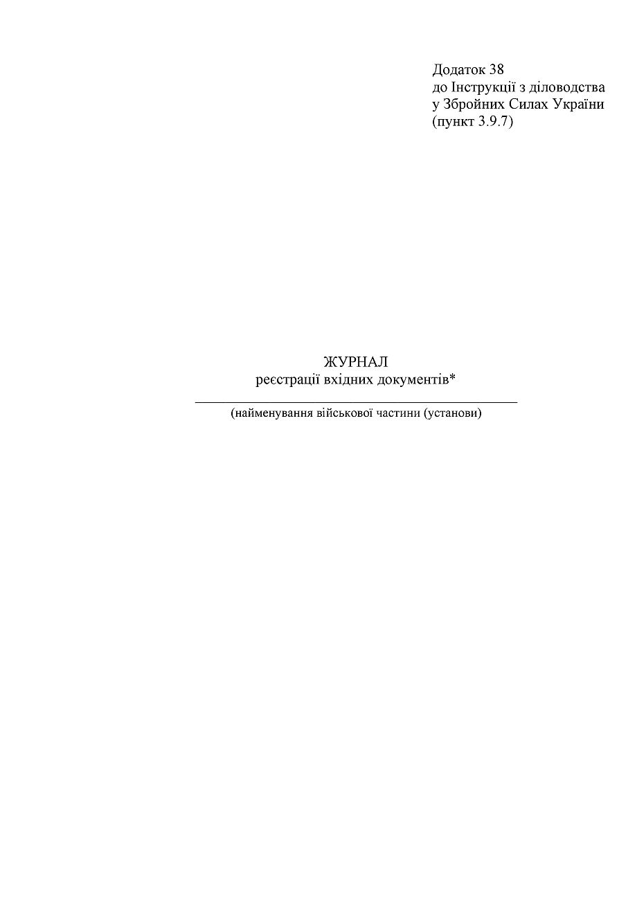 Приложение 38 к Инструкции по делопроизводству в Вооруженных Силах Украины (пункт 3.9.7).