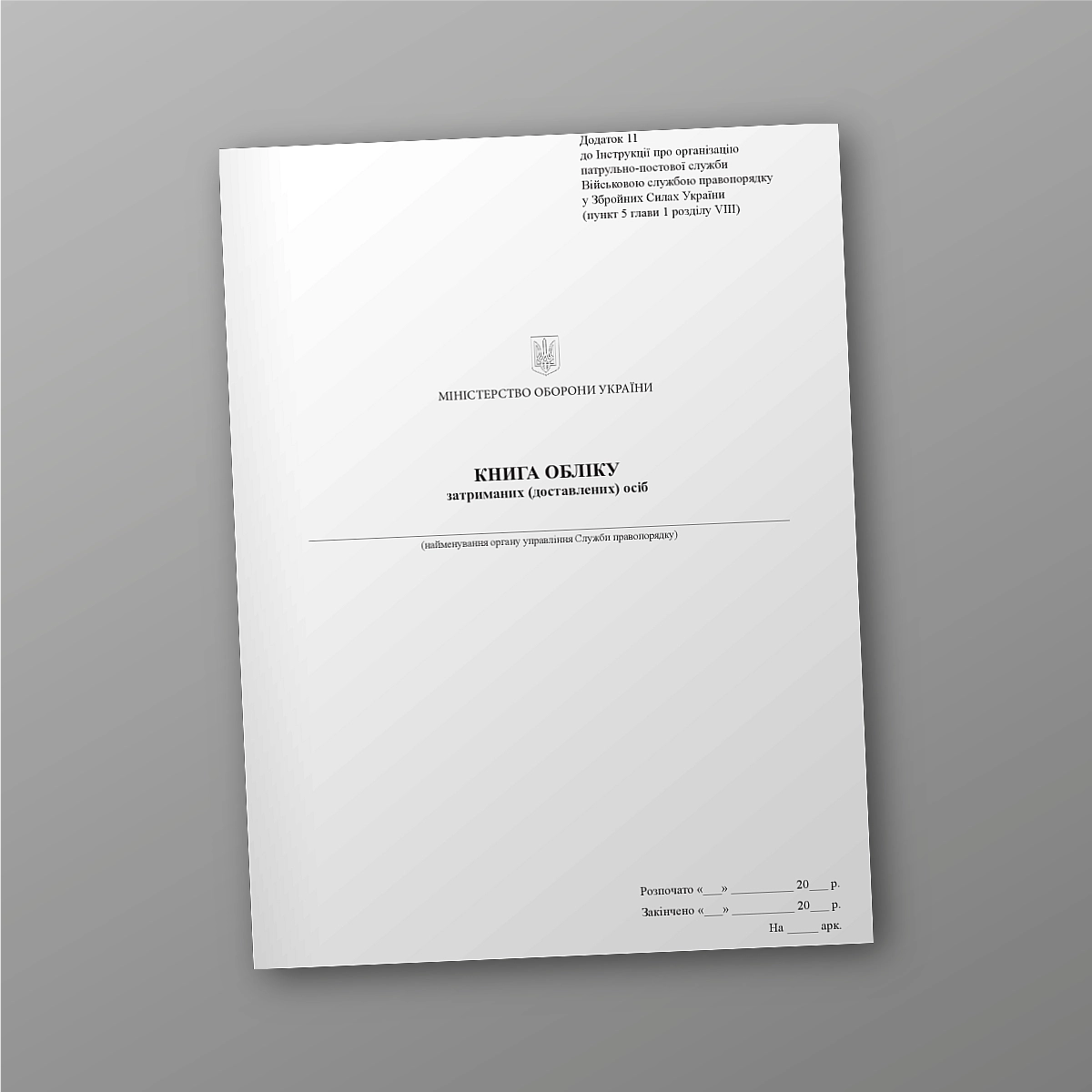 Журнал или книга воинского учета может быть выполнена в мягкой или твердой обложке. Если Вы не нашли нужную книгу для ВСУ или количество страниц и прочее нужно сделать под вашу задачунапишіть нам на e-mail [email protected], мы обязательно свяжемся с Вами. Все военные журналы мы печатаем в соответствии с приказом МО Украины.