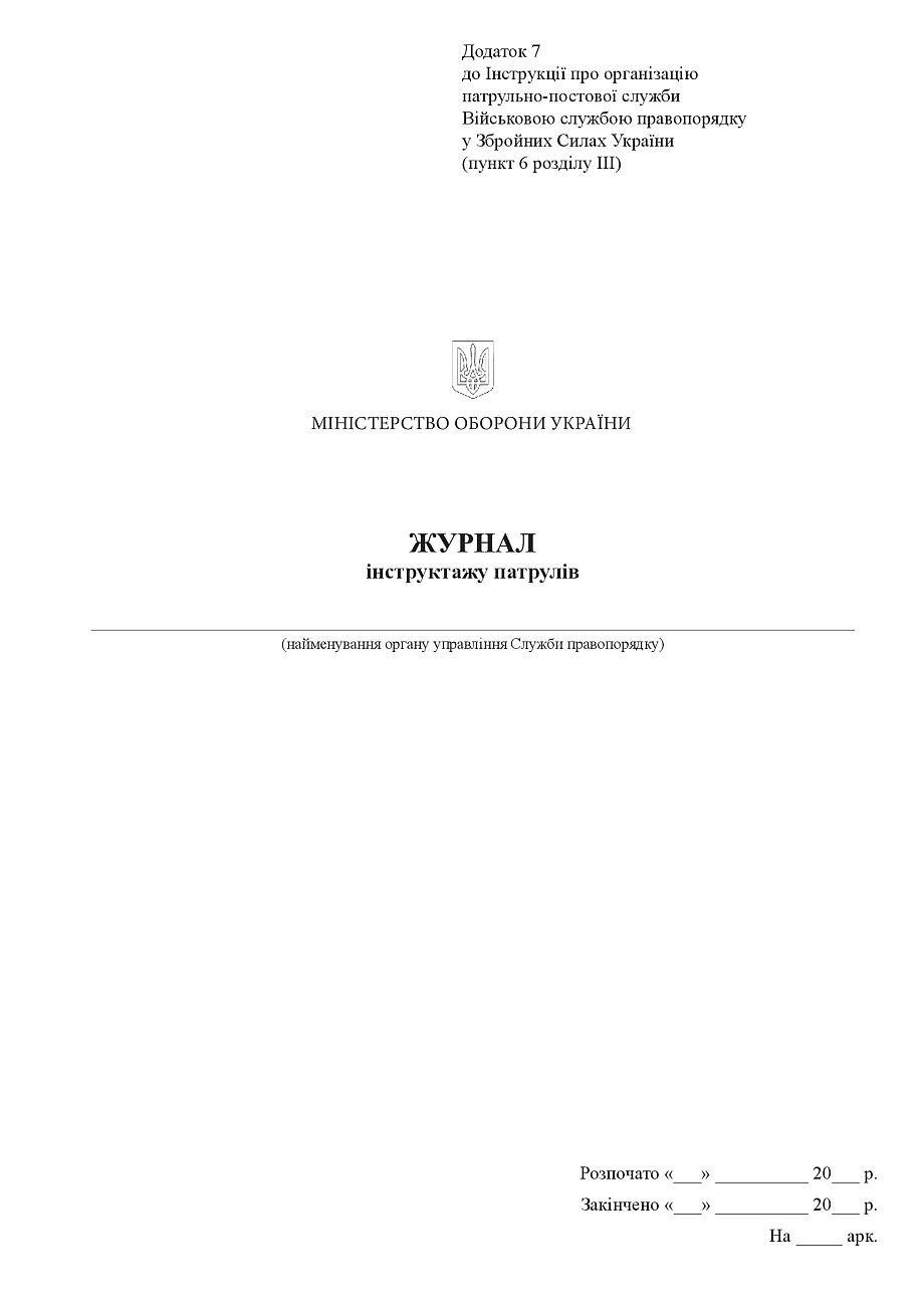 Книга инструктажа патрулей Приложение 7 к Инструкции об организации патрульно-постовой службы Военной службой правопорядка в Вооруженных Силах Украины (пункт 6 раздела III).