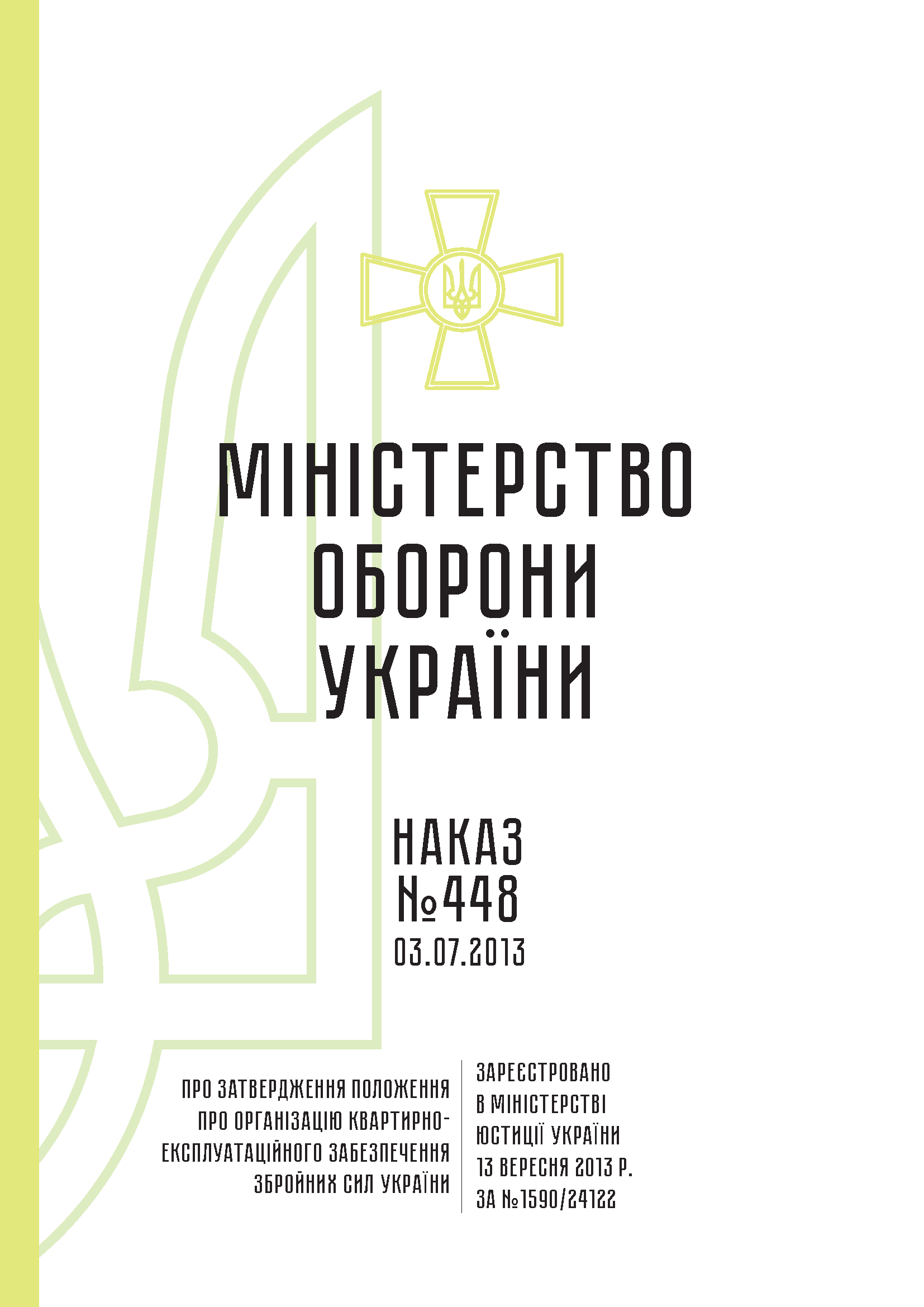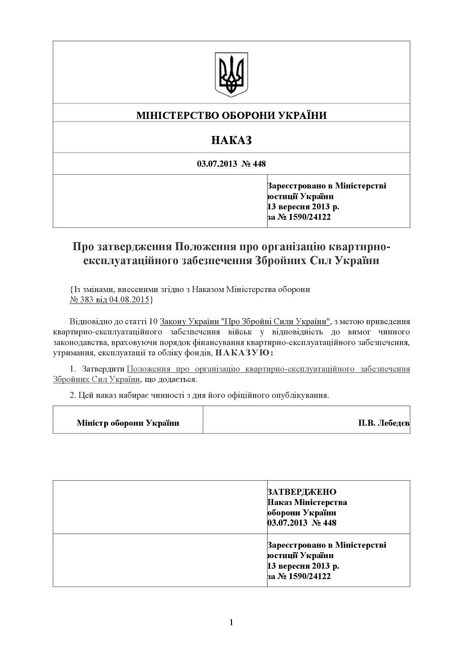 Приказ 448+ Приложения. Об утверждении Положения об организации квартирно-эксплуатационного обеспечения Вооруженных Сил Украины.