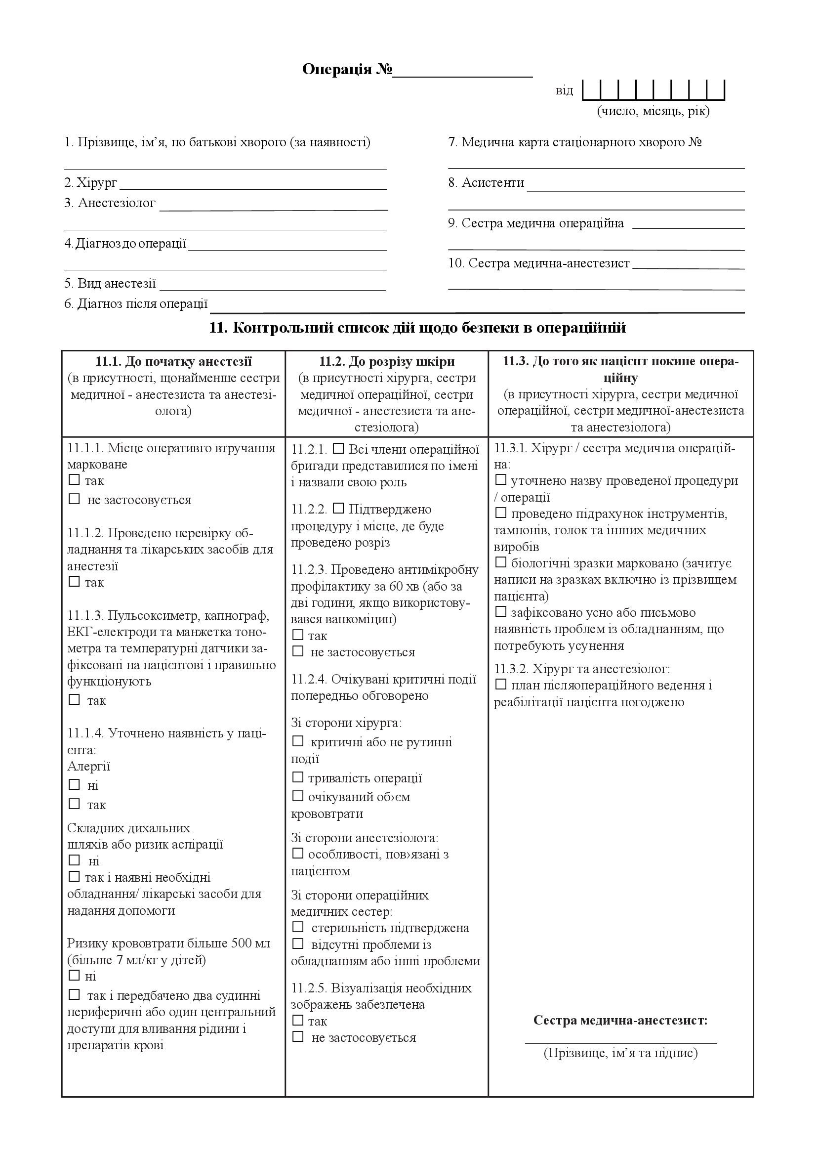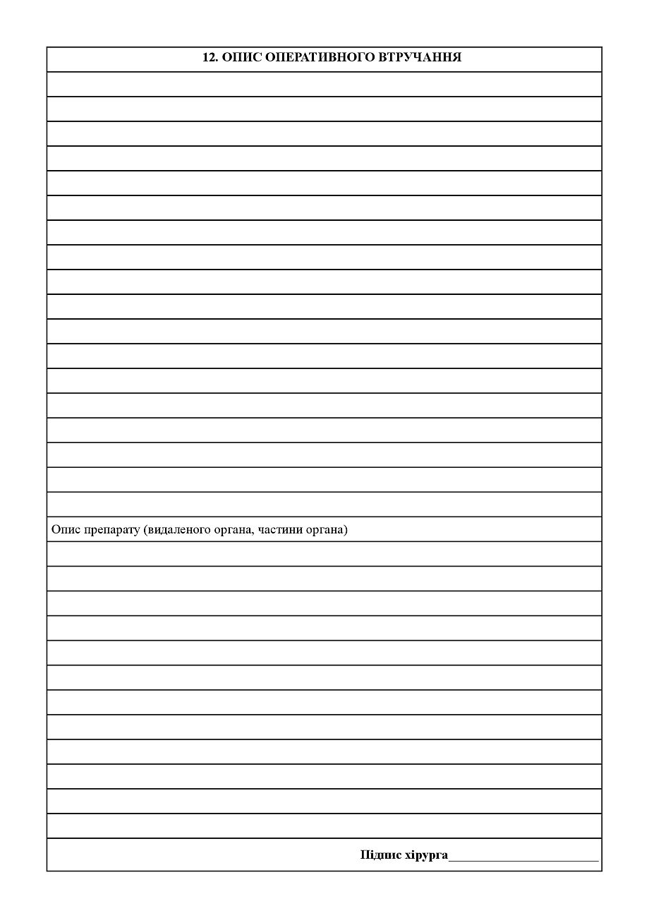 Журнал записи оперативных вмешательств в стационаре.