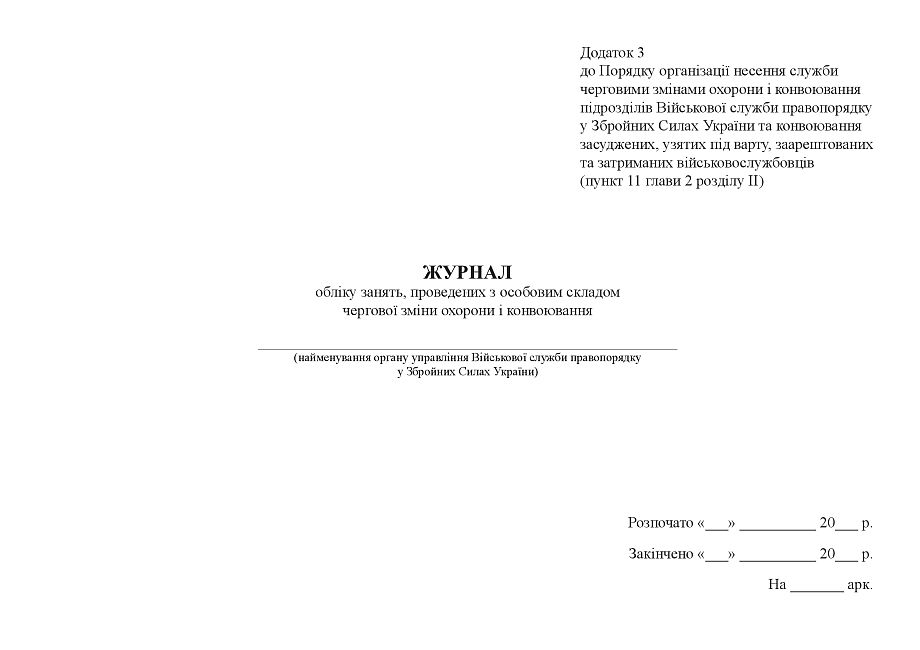 Журнал учета занятий, проведенных с личным составом очередной смены охраны и конвоирования .